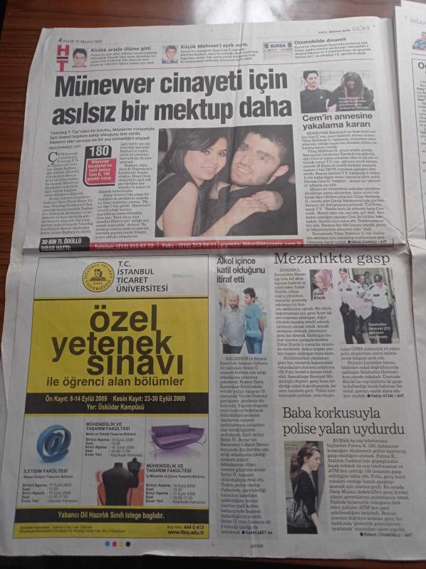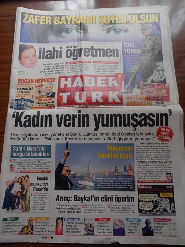 Habertürk Gazetesi - 30 Ağustos 2009 - Başbakan Recep Tayyip Erdoğan'ın Tabancası Tutukluk Yaptı - Bülent Arınç Deniz Baykal'ın Elini Öperim - Said Nursi'nin Sorgu Tutanakları - Zafer Bayramı Kutlu Olsun - Gazi Mustafa Kemal Atatürk - Terör Örgütünün Eski Yöneticisi Şükrü Gülmüş İmralı'daki Abdullah Öcalan İçin Seks Özgürlüğü İstedi - Barack Obama'ya İnterneti Kapatma Yetkisi adlı eser Türkçe dilindedir.