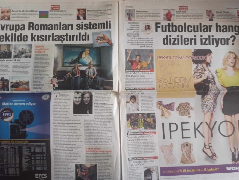 Habertürk Günlük Cumartesi Gazetesi - 3 Nisan 200 - Saadet Işıl Aksoy - Tuğba Büyüküstün - Tamer Yılmaz - Koray Erkaya - Tuna Kiremitçi - Erkekler İşe Böyle Gidecek - Behzat Gerçeker - Avrupa Romanları Sistemli Şekilde Kısırlaştırıldı - Futbolcular Hangi Dizileri İzliyor? - Servet Çetin - Semih Şentürk - Selçuk İnan - Egzotik Keyif Bangkok - Uzay Yolculuğu İçin 16 Araç - Uzay Limanı Yakında Bitecek - Fikri Hür Vicdanı Hür Bir Yazarım! - Fırlama Oyunları Hep Seveceğim - Allah'tan Ümit Kesilmez - Erkek Modası Nereye Gidiyor? - Elegan İtalyan İstanbul'a Geldi - Otizmin Gülen Yüzleri - Mutluyum Demek Ayıp - Motorculara Bahar Rotası - Rihanna'yla Sahneye Çıkmak İsteirm - 2 Gün 2 Gece Eğlence Hafta Sonu Ne Yapsak - Herkes İçsin ve Kutlasın - Katmandu'da 11 Sene - Elif Köksal fotoğraf ve haberi - Tam Takım Gazete Yıpranma, sararmalar, kupon kesiği ve yırtılmalar zamana bağlı olarak görülebilir