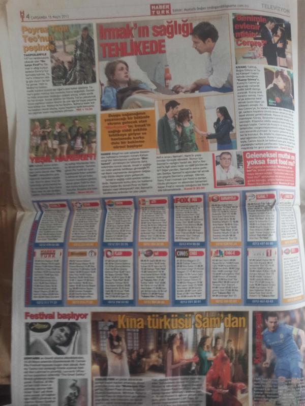 Habertürk Günlük Magazin Gazetesi - 15 Mayıs 2013 - Zoe Saldana - İbrahim Toraman - Serdar Ortaç - Chloe Ortaç - Burak Özçivit - Ceylan Çapa - Şahika Koldemir - Emre Kınay - Gamze Karaman - Nuri Sesigüzel - Şebnem Ferah -Begüm Şen - Müge Sırmabıyık - Deniz Melisa Kanatlı - Minel Karakaşlı - Ferruh Karakaşlı - Mustafa Sarıgül - Burak Yılmaz - Esin Övet - Atalay Demirci - Kaan Taşaner - Kına Türküsü Sam'da - Herkesin Bir Kusuru Var Benimki de Kumar - İbrahim Şahin - Hüseyin Avni Mutlu - Hüseyin Karadayı - Balık, Yumurta ve Kırmız Et Zeka Açıyor - Hande Kazanova - Yıldızların Şifresi - Çocuğa Bağımlı Anneler ve Aşırı Korumacılık - Damla Çeliktaban - Yaşamdan Notlar - Semet Severöz - Cindy Crawford - Paul Newman - Clint Eastwood - David Bowie - Elizabeth Taylor - Terry O'Neill - Kate Moss fotoğraf ve haberi - Tam Takım Gazete Yıpranma, sararmalar, kupon kesiği ve yırtılmalar zamana bağlı olarak görülebilir