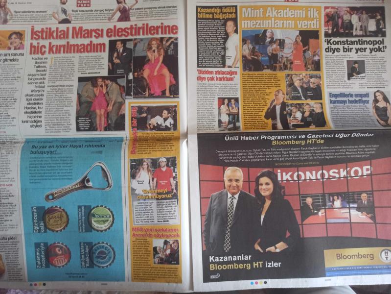 Kitap 2010 yılında yayınlanmıştır. 12 sayfadır. Habertürk Günlük Magazin Gazetesi - 18 Haziran 2010 - Kıvanç Tatlıtuğ - Beren Saat - Lara Surol - Gelin Arabası Ferrari - Uğur Dündar - Faruk Bayhan - Oylum Talu - Mahsun Kırmızıgül - Nehir Erdoğan - İbrahim Tatlıses - Ajda Pekkan - Saçma Bir Hadise - Ümit Karan - Ünal Demirkaya- Çeşme'de Parti - Brezilyalı Gelin baba Evine döndü - Merve Hasman - Begüm Şen - Volkan Konak: 5 yıl Sonra Müziği Bırakıyorum - Şener Şen - Melisa Sözen - İstiklal Marşı Eletirilerine Hiç Kırılmadım - Zeynep Koçak - Oğuzhan Koç - Mint Akademi İlk Mezunlarına Verdi -Savcı Ahmet Milletvekili Oldu - Uğur Dündar - Bugün Ne Pişirelim - Yeni Oyunlarında Sahneyi Hayvanlarla Paylaşıyoruz - Yeni Ay filmi - Portakalı Soyun Sivilcelerinize Koyun - Ağda Koltuk Altlarınız Karartamasın - Aramızda Dünyalı Var - Her Şeye Rağmen Aşk Kazanabilir mi? - Böyle Olur İlahların Aşkı - Yemininin Bozmuş Bir Kere - Travolta Yine Tatlı Sert fotoğraf ve haberi - Tam Takım Gazete adlı eser Türkçe dilindedir.