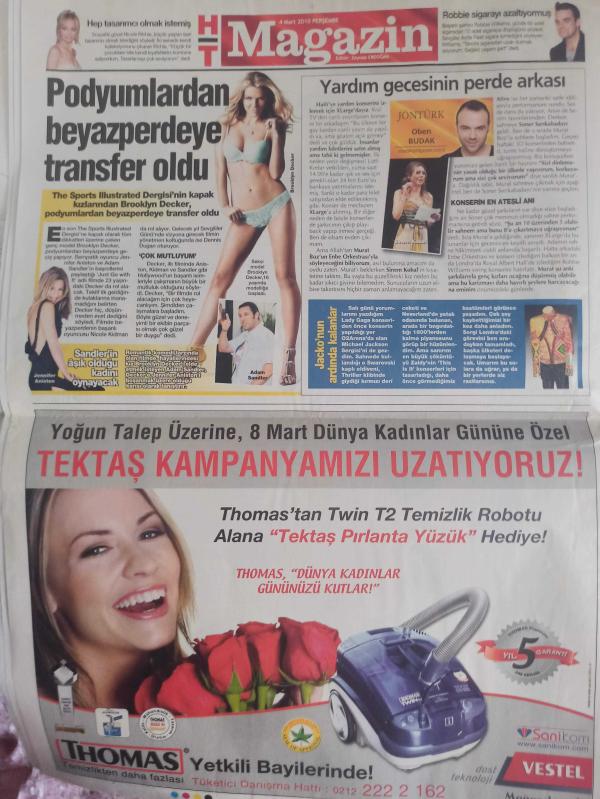 Habertürk Günlük Magazin Gazetesi - 4 Mart 2010 - Laetitia Casa - Marie Ange Casta - Vargılar Boşanıyor - Mine Vargı - Ömer Vargı - Hülya Avşar - Gülben Ergen - Demet Kutluay - Hande Yener - Özcan Deniz - Fahriye Evcen - Şahan Gökbakar - Sosyetikler Mankenlik Hevesini Tattılar - Madonna - İnci Aksoy - Mustafa Taviloğlu - Rahşan Gülşan - Sinem Kobal - Doğa Rutkay - Seren Serengil - Tarık Papuççuoğlu - Pınar Dikici - Binali Yıldırım - Köşkte Gerginlik Had Safhada - Gülin Yıldırımkaya - Podyumda İspanyol Rüzgarı - Hannah Montana - Hannah Sizi Hollywood'a Çağırıyor - Dizinizden Gıcırtı Geliyorsa Sizde Kireçlenme Olabilir - Beni Baştan Yarat - Serpil Kalender - Damla Cercisoğlu -Brooklyn Decker - Adam Sandler - Jennifer Aniston - Oben Budak fotoğraf ve haberi - Tam Takım Gazete Yıpranma, sararmalar, kupon kesiği ve yırtılmalar zamana bağlı olarak görülebilir