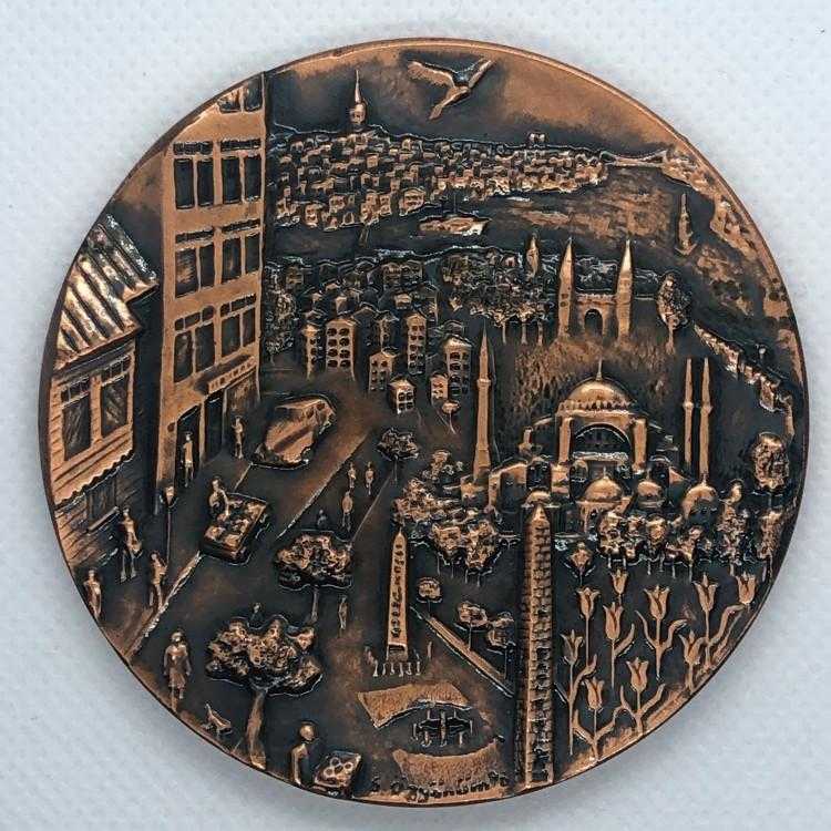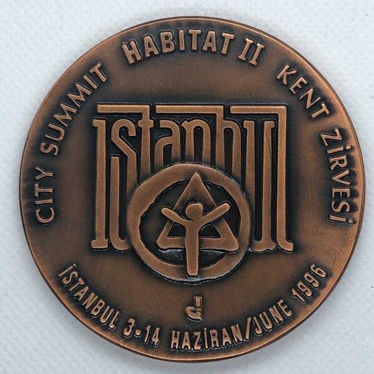1996 Yılındaki Habitat II Kent Zirvesi için bastırılan, 196 GR, 70 mm boyutunda Okside Bronz Madalyon.