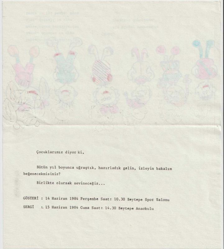 Hacettepe Üniversitesi Beytepe Anaokulu Yıl Sonu Gösterisi Davetiyesi 1984, en son 1 yıl önce güncellenmiştir.
