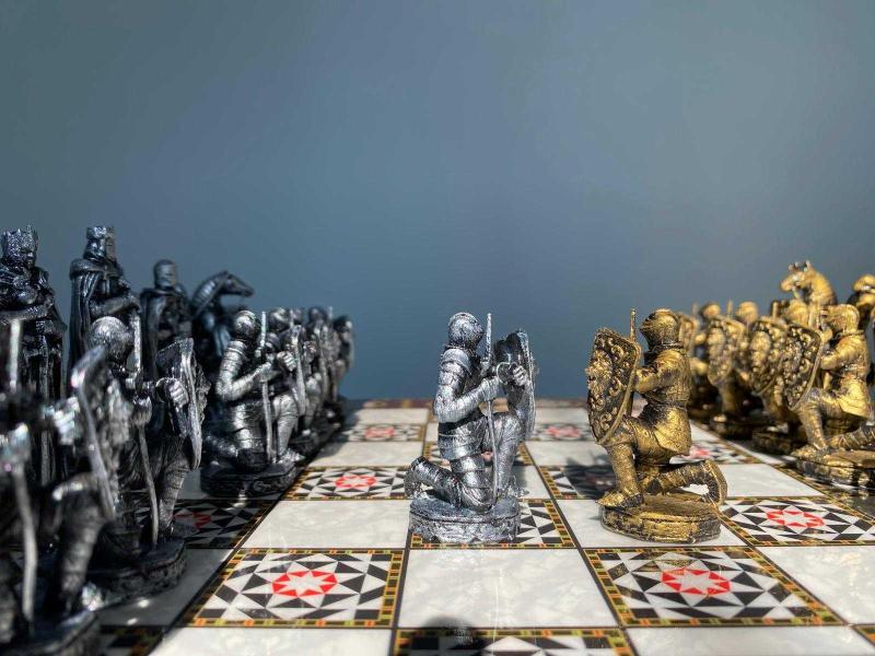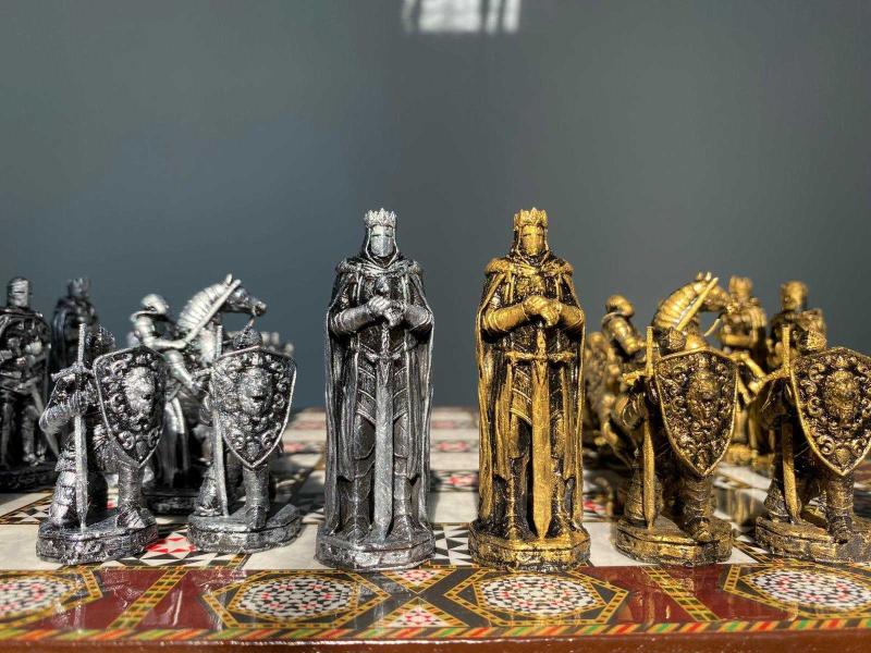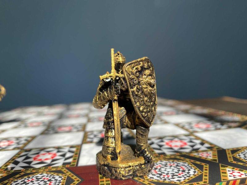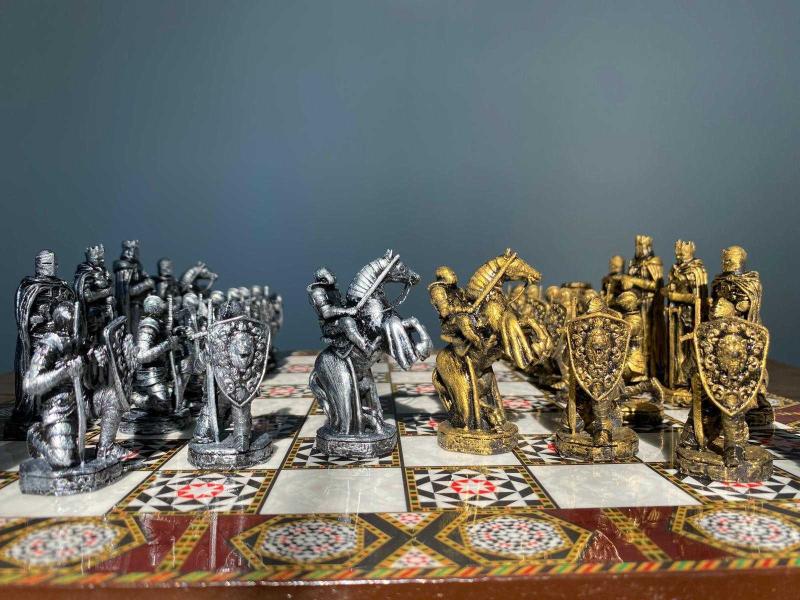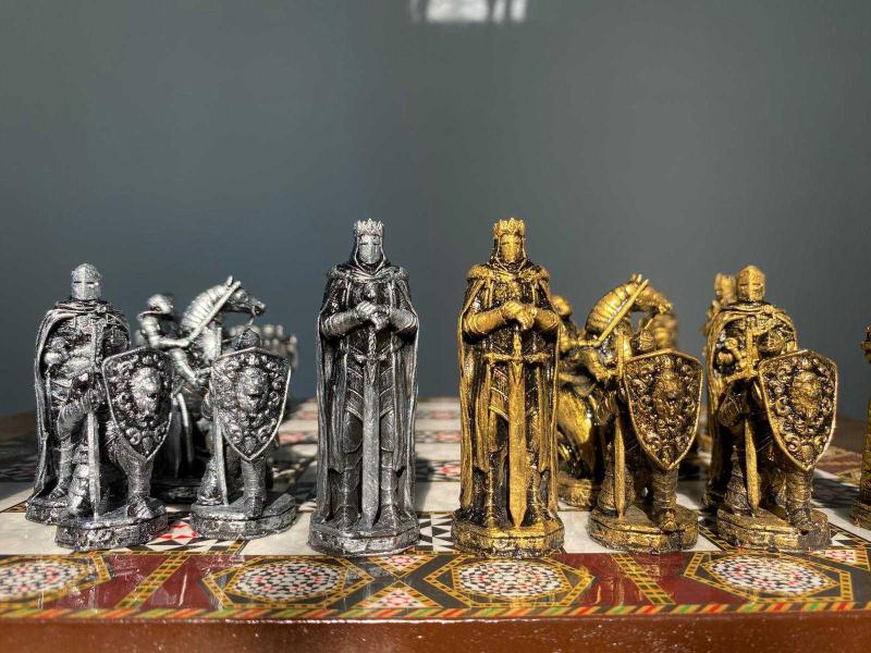 Bu özel tasarım satranç takımı, Haçlı Tapınak Şövalyeleri döneminin tarihi figürlerinden ilham alınarak üretilmiştir. 🔹 Taşlar: Polimer malzeme – elde boyanmış – yüksek detaylı 🔹 Taş yüksekliği: 8 cm 🔹 Tahta: Masif ahşap – 37x37 cm ölçülerinde 🔹 Toplam ağırlık: 2 kg 🔹 Renk: Altın&Gümüş 🔹 Kutusunda gönderilir ✔️ Oyuncular için dengeli ağırlık ✔️ Dekoratif olarak vitrin, ofis ya da kütüphane için ideal ✔️ Özel günlerde hediye olarak tercih edilebilir (Babalar Günü, terfi hediyesi, koleksiyonluk vb.) ❗ Sadece sınırlı sayıda üretildi. Stoklar tükenmeden sahip olun.