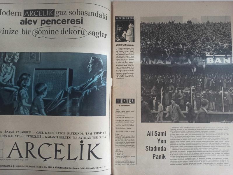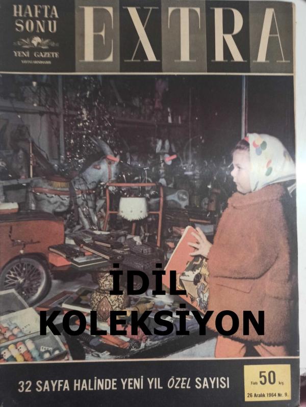 Hafta Sonu Extra Aktüalite Sinema Tiyatro Müzik ve Magazin Dergisi - 26 Aralık 1964 - Sayı:9 - Çocuklar ve Oyuncaklar - Ali Sami Yen Stadında Panik - İsmet İnönü CHP Değil Sadece Bir CHP lidir - İlhami Sancar - ''Kıbrıs Rumlarını Türk Uçakları En Geç Bir Saatte Yok Edilebilir'' - İzmir Oto Fabrikası 1.5 Yıl Sonra Türkiye'nin Yollarını Otomobil ile Dolduracak - Orta Doğuda Durum Yine Karışıyor - İtalya'da Cumhurbaşkanı Seçimi - Bon Hükümeti Nato Konferansından Memnun Değil - Noel Partisi Dayak Partisi - Dünya Çocuklarının Bayramı - Yılın Moda Oyuncakları - Sevimli Hayvanlar - Vitrinler Oyuncak Dolu - Bebek Kardeşler - KAlede Nöbetçiler Bekliyor - Karar Veremiyor - Oyuncaklar Göz Kırpıyor - İyi Biten Bir Yılbaşı Gecesi - Canavarlar Vadisi Çizgi Romanı - 1964 ve Olaylar - Acemi Kaşifler Az Kalsın Donuyorlardı - 1965 Takvimi - Ünlü Sinema Yıldızları 1965 Yılında Ne Diliyorlar? - Kesenize Göre Yılbaşı Sofrası - Çifte Nikah - Doris Day fotoğraf ve haberi - Tam Takım Dergi Yıpranma, sararmalar, kupon kesiği ve yırtılmalar zamana bağlı olarak görülebilir