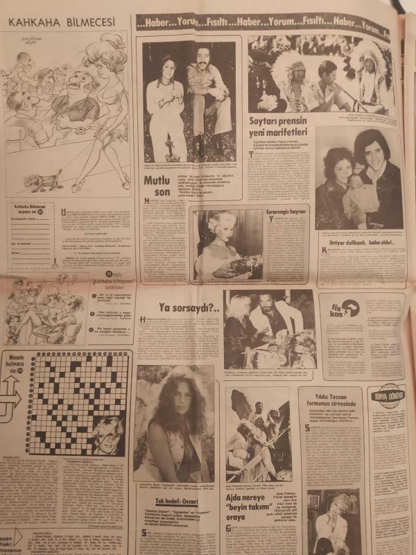 Hafta Sonu Haftalık Aktüalite Sinema Tiyatro Müzik ve Magazin Gazetesi - 12 Ağustos 1977 - Sayı:33 - Türkan Şoray kardeşi Nazan Şoray'ın yasak aşkına kesinlikle karşı çıktı - Rüçhan Adlı - Şevket Adlı - Erol Büyükburç - Prens Charles - Ajda Pekkan - Gönül Yazar'ı, Ankara'da soydular - Sarılığın yazı kışı yoktur - Taner Şener ''Felaket bana adım adım geldi'' - Brigitte Bardot - Annette Stoyberg - Catherine Deneuve - Catherine Schneider - Asu Maralman kalafattan geçti - Güzele ne yaraşmaz - Gülsen Erad - Güler Yiğit - Selma Kip - Salonda Suç Üstü - Erol Evgin - Ayla Algan - Turan Güneş - Naim Akan - Sarığı attı, mikrofonu kaptı - Seyyal Taner bu krizlerin sebebi nedir? - Naim Akan - Garip Ama Gerçek çizgi romanı - Elif Pektaş ''Yüzemiyorum, çünkü huylanıyorum'' - Hale Soygazi'nin eşi Ahmet Özhan'a sürprizi - İşte, Seher Şeniz'i intihara sürükleyen adam! - İskender Doğan'ın ailesi ateş püskürüyor - Okşan Ay - Bülent Ersoy, hatıra defterine not düştü - Sevda Karaca - Tam Takım Gazete adlı eser, Kitap > Süreli Yayınlar > Gazeteler > Türkiye > Genel > Haftalık kategorisinde İkinci El olarak satıştadır.
