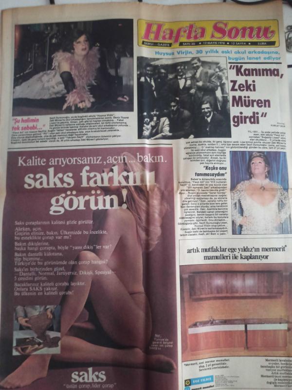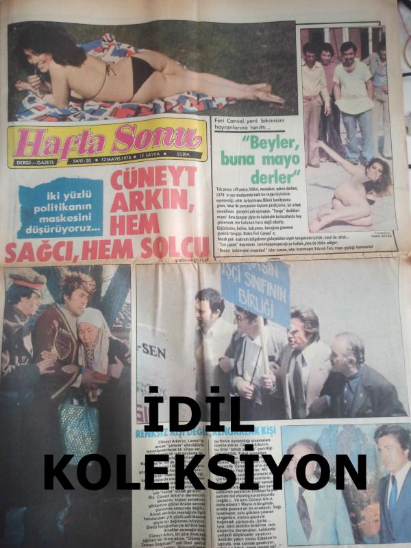 Hafta Sonu Haftalık Aktüalite Sinema Tiyatro Müzik ve Magazin Gazetesi - 12 Mayıs 1978 - Sayı:20 - Cüneyt Arkın, Hem Sağcı, Hem Solcu - Feri Cansel, yeni bikinisini hayranlara tanıttı - Renksiz kişi değil, rengarenk kişi - Cem Karaca - Neşe Alkan - Hülya Koçyiğit - Prenses Caroline - Kahkaha Bilmecesi - Müjde Ar - Haftaya Bakış - Kadın Hastalığının Ayıbı Yoktur! - Türkan Şoray - Selçuk Ural - Tayfun Kalkavan - Neydi Neydi Ne? - Güzele Ne Yaraşmaz - Bergüzar Gömeç - Emine Kumcu - Aliye Kurtuluş - Zeynep D'andria - Ölüler Kumar Oynamaz hikayesi - Bir Türk Bestecisi Beatles'ı birleştirecek - Zeki Çetin - Bülent Ersoy - Ajda Pekkan - Seher Şeniz - Garip Ama Gerçek - Nejat Uygur - Hulusi Kentmen'in Küçük Cenneti - Ahmet Özhan - Hale Saygazi - Canan Perver - Gönül Yazar - Sinan Bilsel - Canan Perver - Nilüfer - Huysuz Virjin - ''Şu halimin tek sebebi'' fotoğraf ve haberi - Tam Takım Gazete Yıpranma, sararmalar, kupon kesiği ve yırtılmalar zamana bağlı olarak görülebilir