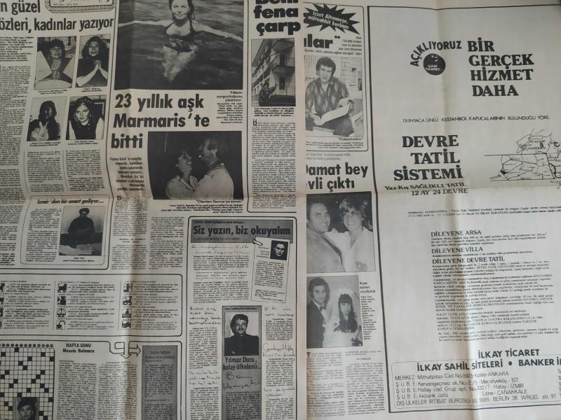 Hafta Sonu Haftalık Aktüalite Sinema Tiyatro Müzik ve Magazin Gazetesi - 17 Eylül 1981 - Müjde Ar, bu düşüşü kendi eliyle hazırladı - İzmir'de gizli nişan - Emel Sayın - Filiz Akın - Gülşen Bubikoğlu savaşı - Yargıtay, Bülent Ersoy'un kadınlığını tartışıyor - Baba kız birbirini reddediyor - Behiye Aksoy - Ahmet Aksoy - Meral Zeren - Görünmeyen adamın gözüyle - Yağmurla sızılar - Sonbaharda saçlar neden dökülür - Nilüfer - Ferdi Tayfur - Gökben - Neslihan Tekin - Ercüment Berker - Semra Torin - Selim Edes - Ömer Aral - Ayşe Irmak - Fikret Şenes - Ülkü Aker - Çiğdem Talu - Fatma Girik - Memduh Ün - 23 yıllık aşk Marmaris'te bitti - Siz yazın, biz okuyalım - İzzet Altınmeşe, müteahhit kurbanı - Tülay Özer - Damat bey evli çıktı - Gencay Erbatu - Sevda Seval - Gülünç ama gerçek - Orhan Boran - Mediha Şen'in en mutlu günü - Hülya Koçyiğit, evlat - Ahmet Hoşsöyler - Bekir Çelenk - Nilüfer Koçyiğit - Gülşah - Vasfi Uçaroğlu - Kamuran Akkor - Didem Baykal - Şebnem İkbal - Tam Takım Gazete Yıpranma, sararmalar, kupon kesiği ve yırtılmalar zamana bağlı olarak görülebilir