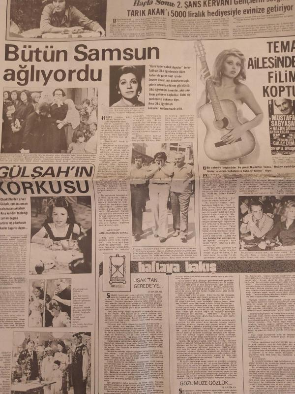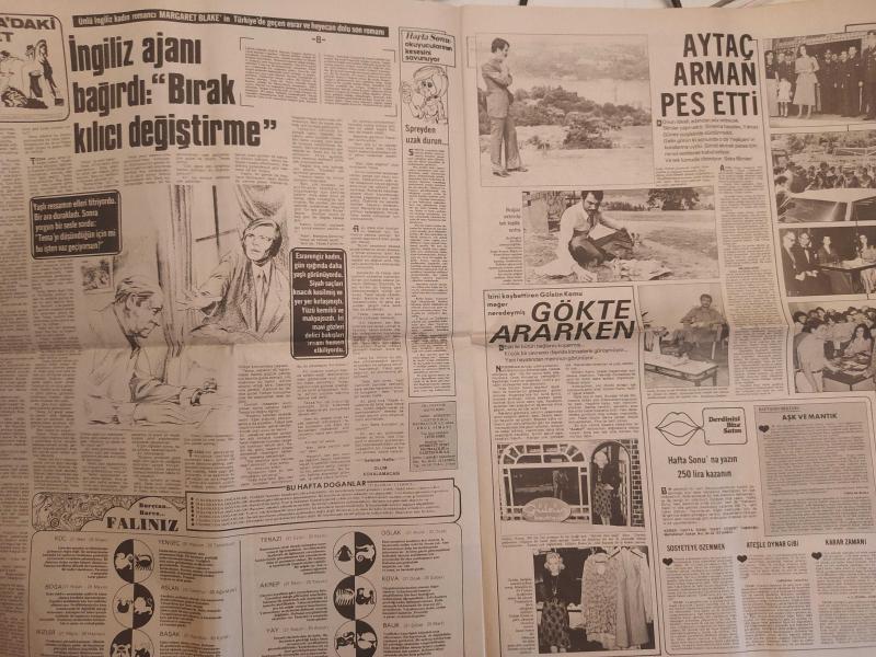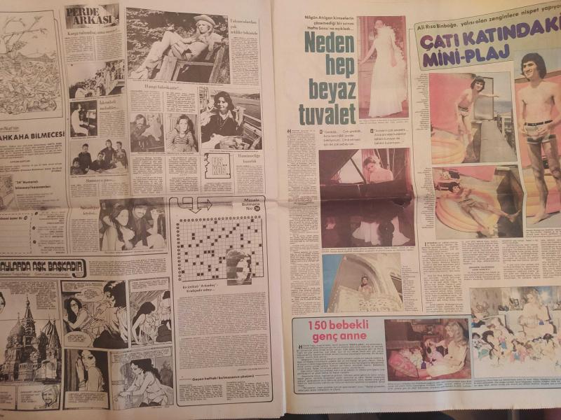 Hafta Sonu Haftalık Aktüalite Sinema Tiyatro Müzik ve Magazin Gazetesi - 27 Haziran 1975 - Sayı:26 - Türkan Şoray ''Ben de Fantom'a bindim'' - Şefik Tabakan - Muammer İnal - Müjde Ar - Mehtap Gürel - Tarık Akan - Muzaffer Tema - Gülay Tema - Bütün Samsun ağlıyordu - Gülşah'ın korkusu - Yaşla gelen dortlar - Kaza geliyorum demez - Prenses Caroline - İzzet Günay - Güzele ne yaraşmaz - Güngör Sikman - Aytül Tanaçan - Nuran Demirdöken - Merih Gürkaynak - Neydi, neydi, ne? - Truva'daki Ceset - İngiliz ajanı bağırdı: ''Bırak kılıcı değiştirme'' - Aytaç Arman pes etti - Türkan Şoray - Gülsün Kamu gökte ararken - Şimdi de havacıların yıldızı - Saraylarda aşk başkadır çizgi romanı - Nilgün Atılgan neden hep beyaz tuvalet - Ali Rıza Binboğa, Çatı katındaki mini plaj - Hülya Tuğlu - 150 bebekli genç anne - İşte Yeliz - Melike Demirağ - Yeşilçam Kilo Atıyor - Feri Cansel - Melek Görgün - Oya Peri - Bahar Erdeniz fotoğraf ve haberi - Tam Takım Gazete Yıpranma, sararmalar, kupon kesiği ve yırtılmalar zamana bağlı olarak görülebilir