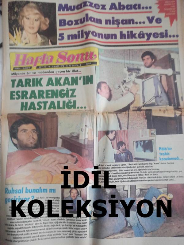 Hafta Sonu Haftalık Aktüalite Sinema Tiyatro Müzik ve Magazin Gazetesi - 3 Mart 1978 - Sayı:10 - Muazzez Abacı - Tarık Akan'ın esrarengiz hastalığı - Ekrem Bora - Tolga Aşkıner - Sabrina Duncan - Kate Jackson - Anthony Quinn - Ayça Oktay - Aynur Akarsu - Serpil Örümcer - Yaşar Kekova - Polat Tezel - Yavuz Asöcal - Fahrettin Aslan - Hasan heybetli - Emel Sayın - Nilüfer - Cüneyt arkın - Gülşen Bubikoğlu - Nazan Şoray - Rüçhan Adlı - Bülent Ersoy - Fahri Korutürk - Neydi Neydi Ne? - Güzele Ne Yaraşmaz - İpek Pekgöz - Günseli Korur - Yasemin Korur - Cem Karaca - Rüçhan Çamay - Garip Ama Gerçek - Sevim Tuna - Kenan Bingöllü - Ahu Tuğba - Sevim Tuna - Cavidan Dora - Oya Peri - Fatma Girik - Hülya Tuğlu - Behiye Aksoy - Bahar Erdeniz, 3 yol ağzında fotoğraf ve haberi - Tam Takım Gazete Yıpranma, sararmalar, kupon kesiği ve yırtılmalar zamana bağlı olarak görülebilir
