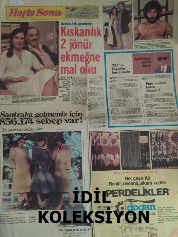Hafta Sonu Haftalık Aktüalite Sinema Tiyatro Müzik ve Magazin Gazetesi - Sayı:52 - Rüçhan Adlı - Türkan Şoray - Kıskançlık 2 jönün ekmeğine mal oldu - Cüneyt Arkın - Hakan Balamir - Görünmeyen adamın gözüyle - TRT'de kayanlar kaydıranlar - Gaz üreten mideler için - Hıçkırık nedir? - Benli türkücü evli çıktı... - İzzet Altınmeşe - Yüksel Uzel hem ağlıyor hem gidiyor - Güzide Kasacı dert getirdi - Garip ama gerçek çizgi romanı - Gönül Yazar, İsviçre'de şifa arıyor... - Yusuf Sezgin - Selma Güneri - İşte adam olacak çocuk - Parizien külotlu çorap reklamı fotoğraf ve haberi - Gazete tam değildir sadece 4 sayfası mevcuttur Yıpranma, sararmalar, kupon kesiği ve yırtılmalar zamana bağlı olarak görülebilir