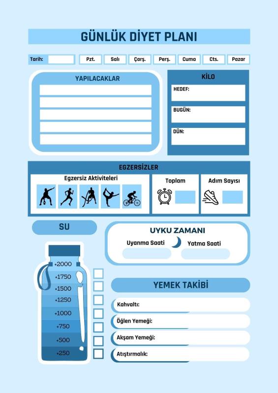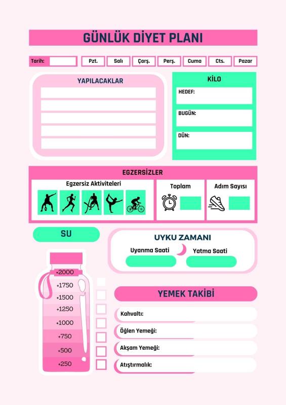 Haftalık Diyet Planı YAZ-SİL (Silinebilir Kalem Hediye) Diyet Listesi Plan Defteri Türkiye’de İLK Defa YAZ-SİL Diyet Planı Artık diyetinizi bir plan dahilinde yapacaksınız. YAZ-SİL Plan Defteri içerisinde günlük, haftalık yemek listeleri, içilen su miktarı, yapılacak egzersizlerin yazılacağı bölümler eklidir. Diyet yapmak, zayıflamak veya formunu korumak bir plan dahilinde olursa başarıya ulaşır. Bu defterle günlük, haftalık yapılacaklar, yenilecekleri yazıyorsunuz haftayı tamamlayınca silip tekrar yeni haftayı yazıyorsunuz. Bu plan defteri ömürlük. Çünkü 120 gramajlı birinci kalite kağıda dijital baskı yapılmış ve 125 mikron laminasyonla lamine edilmiştir. Haliyle kırılmaz, yırtılmaz, deforme olmaz. Çoklu kullanıma uygundur. Defterin yanında bir bayanlar bir de erkekler için GÜNLÜK DİYET PLANI verilmektedir. Defter hem bayanlara hem erkeklere hitap etmektedir. Ancak plan kartelaları renklerine göre kullanımı uygundur. Kolay kullanım için spiralli olarak hazırlanmıştır. Defterin yanında silinebilir kalem hediye edilmiştir. Haftalık Diyet Planı YAZ-SİL (Silinebilir Kalem Hediye) Haftalık Diyet Planı YAZ-SİL, sağlıklı beslenme ve planlı diyet için pratik bir çözüm sunan, yazılıp silinebilen bir diyagramdır. Her hafta hedeflediğiniz diyet programını kolayca yazabilir ve gerektiğinde silebilirsiniz. Bu sayede haftalık olarak beslenme düzeninizi takip edebilir, öğünlerinizi düzenli ve motivasyon verici bir biçimde planlayabilirsiniz. Ürünle birlikte gelen silinebilir kalem sayesinde, haftalık menünüzü dilediğiniz gibi güncelleyebilir, yeni planlar yapabilirsiniz. Hem esnek hem de sürdürülebilir bir çözüm sunan YAZ-SİL Diyet Planı, sağlıklı yaşam yolculuğunuzu düzenli ve keyifli hale getirmeyi amaçlar. Sert Kapak (Dış Kapak) Özellikleri: 450 Micron Buzlu Şeffaf Kapak (Sert Kapak) Kraft Cilt (Arka Kapak) Özellikleri: Kraft Kağıt ham maddesi odun selülozudür. Suya dayanıklıdır. Kopma mukavemetlidir. Neme dayanıklıdır. Helezon Özellikleri: Sarff 14 mm Pvc Helezon Spiral Şeffaf (4:1) flament çapı 1,8 dır.