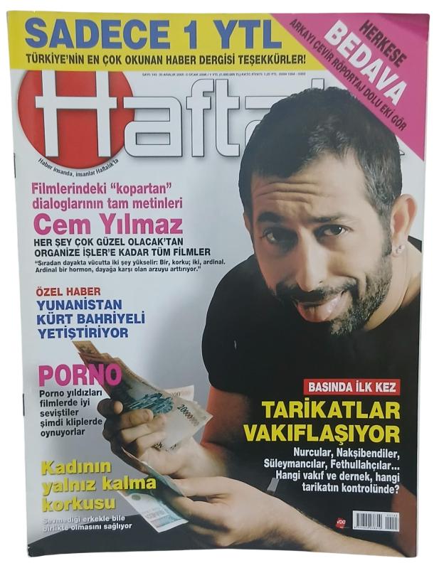 Haftalık Haber Dergisi Sayı 143 / Aralık 2005-Ocak 2006 Cem Yılmaz Kapaklı ... Temiz durumda,ekleri yoktur. *Cem Yılmaz Her Şey Çok Güzel Olacak'tan Organize İşler'e Tüm Filmleri *Yunanistan Kürt Bahriyeli Yetiştiriyor *Porno *Kadının Yalnız Kalma Korkusu *Tarikatlar Vakıflaşıyor