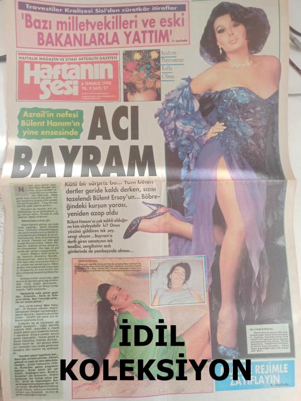 Haftanın Sesi Haftalık Aktüalite Sinema Tiyatro Müzik ve Magazin Dergisi - 6 Temmuz 1990 - Sayı:27 - Travestiler Kraliçesi Sisi'den cüretkar itiraflar - Bülent Ersoy - Azrail'in nefesi Bülent Hanım'ın yine ensesinde - Türkan Şoray'a övgü sağanağı - Reklam afişine sansür - Müjde Ar - Ümit Belen - 'Sübyan' el değiştirdi - dansöz Melike - ''Yeni bir aşk arıyorum'' - Bir Alman prodüktör, gurbetçi Türk gençlerinin kanayan yarasına parmak bastı - Yitik kuşağın filmi yapılıyor - Yunus Nadi - Burcunuz ve Siz - Bulmaca - Ergun Gürsoy - Berke Armay - Fatma Uluçam - Ruhcan Akıl - Şebnem Tugay - Ayşen Çebi - Levent Çebi - Sabahattin Açıkgöz - Özlem Yüzbaşıoğlu - Nezih Duru - Avukat Çetin Yıldırımakın fotoğraf ve haberi - Dergi tam değildir sadece 4 sayfası mevcuttur Yıpranma, sararmalar, kupon kesiği ve yırtılmalar zamana bağlı olarak görülebilir