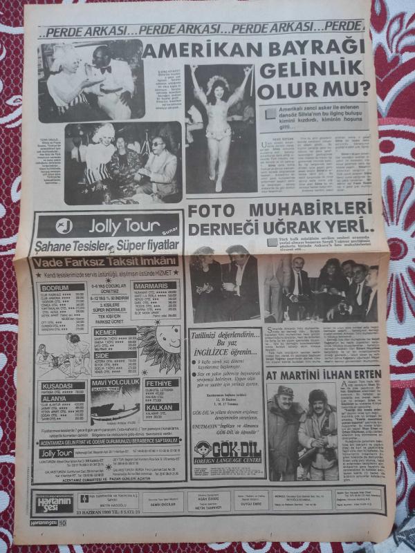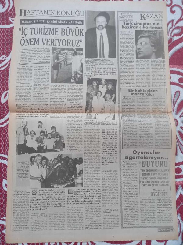 Haftanın Sesi Haftalık Magazin ve Siyasi Aktüalite Gazetesi önlü arkalı 2 sayfa 23 Haziran 1989 Frank Roane-Silvia-Serpil Yağmur-Bülent Hiçyılmaz-İlhan Erten-At Martini-Sinan Vardar-Vural Oger-Oyuncular Sigortalanıyor-Jolly Tour-Gök-Dil reklamı 36*56cm adlı eser Türkçe dilindedir.