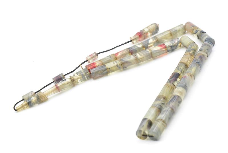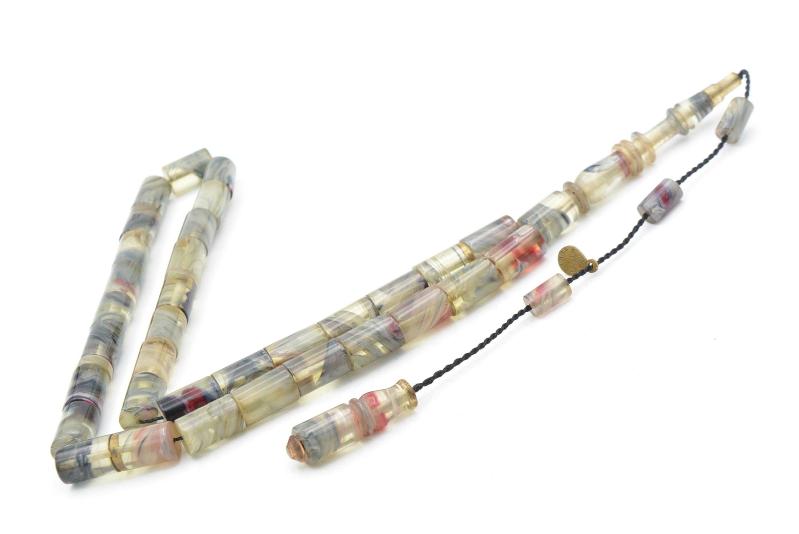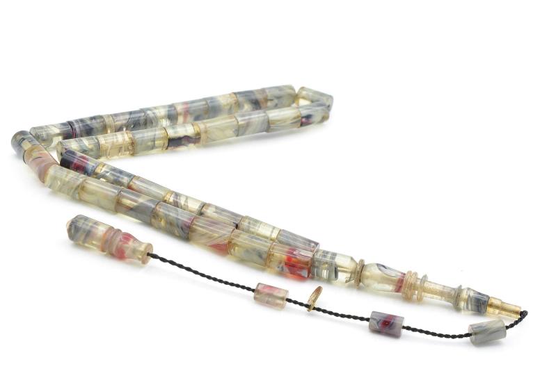 Hakan Turan İmzalı Kesme Model Kırmızı Gri Sıkma Kehribar Tesbih başlıklı antika/koleksiyon objesi Türkiye menşe’lidir. 2000 ve sonrası dönemine aittir.