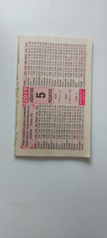 Hakikat Takvimi - 1. Bölge 05 Ağustos 2019 başlıklı ürün, Efemera, Müzik, Sinema > Belge ve Evraklar > Takvimler kategorisi altında İkinci El olarak satılmaktadır.