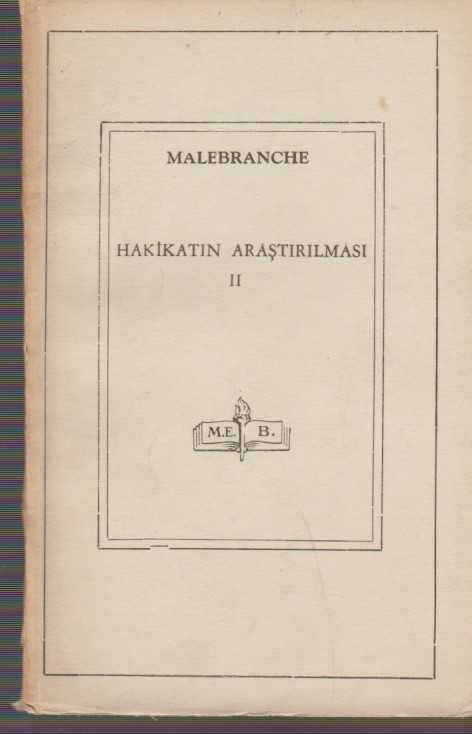 Hakikatin Araştırılması II, Malebranche tarafından kaleme alınmıştır. Kitap 1948 yılında Milli Eğitim Bakanlığı tarafından yayınlanmıştır. 269 sayfadır. Hakikatin Araştırılması II adlı eser Türkçe dilindedir.