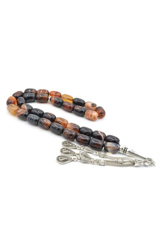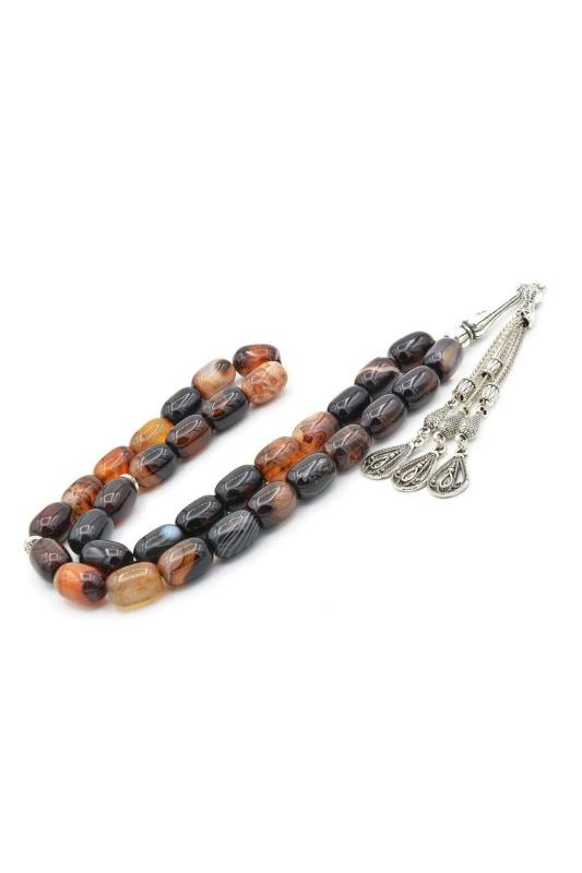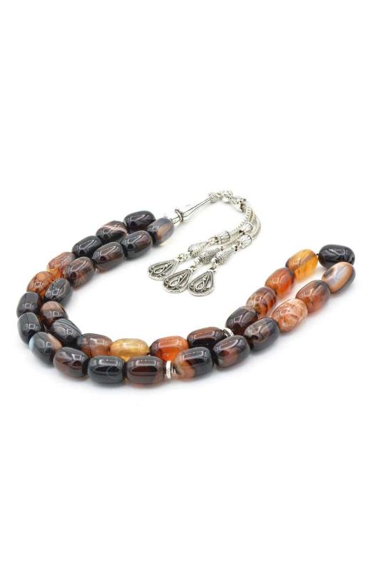 Hakiki Doğal Kapsül Kesim Çizgili Akik Tesbih 1.Kalite Doğal Taş başlıklı antika/koleksiyon objesi Türkiye menşe’lidir. 2000 ve sonrası dönemine aittir.