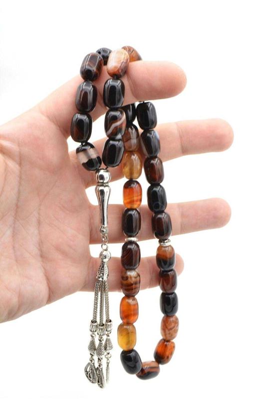 Renk: Siyah Hakiki Doğal Kapsül Kesim Çizgili Akik Tesbih 1.Kalite Doğal Taş Akik taşı tesbihimizde gümüş kaplama malzeme kullanılmıştır. Akik taşı tesbihimiz en dayanıklı tesbih ipine dizilmiştir. Akik taşı tesbihimiz 1.kalite akik taşlarından yapılmıştır. Akik taşı tesbihimiz günlük kullanıma uygundur. Tane ebadı: 10*13.5 MM İmame Boy: 2.9 CM Toplam Boy: 37 CM Ağırlık: 88 GR Ürünlerimiz doğal olduğu için renk tonlarında küçük farklılıklar olabilir. Püskül uçları stok durumuna göre değişiklik gösterebilir.