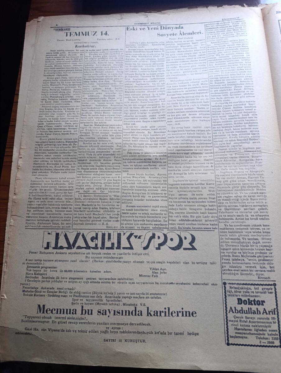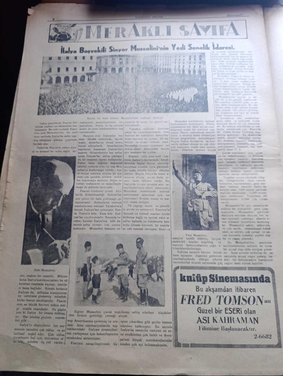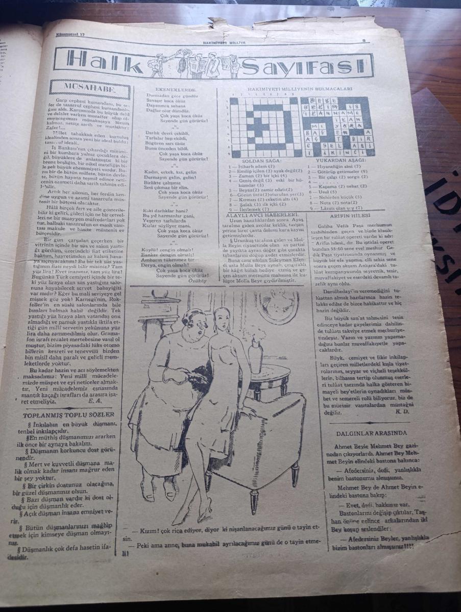 Hakimiyeti Milliye Gazetesi Sayfa Boyutu : 43*60cm Sayfa Sayısı: 8 Yıpranma, sararmalar, kupon kesiği ve yırtılmalar zamana bağlı olarak görülebilir Not: Tam takım gazetedir