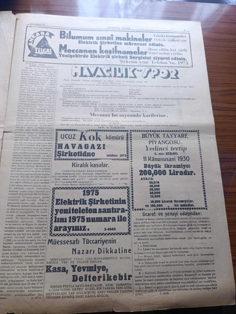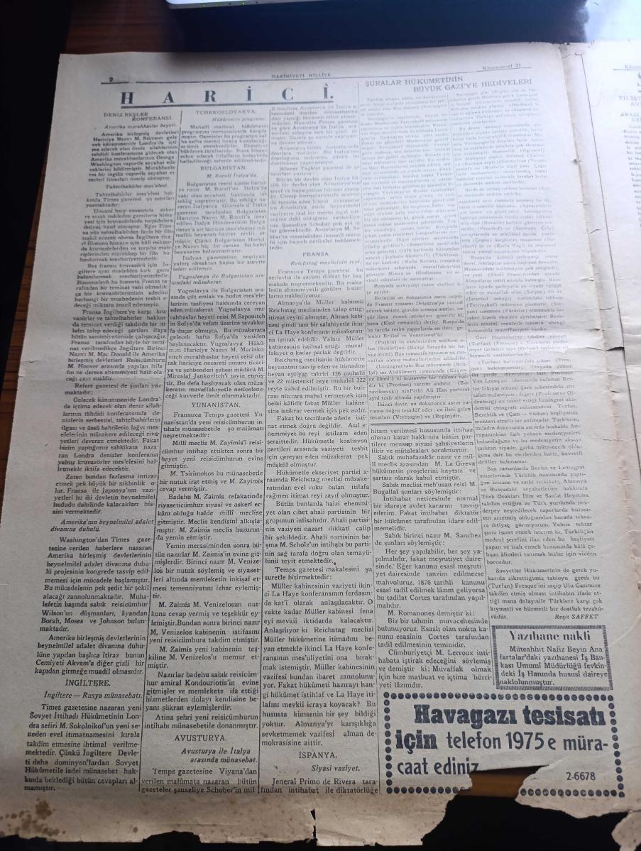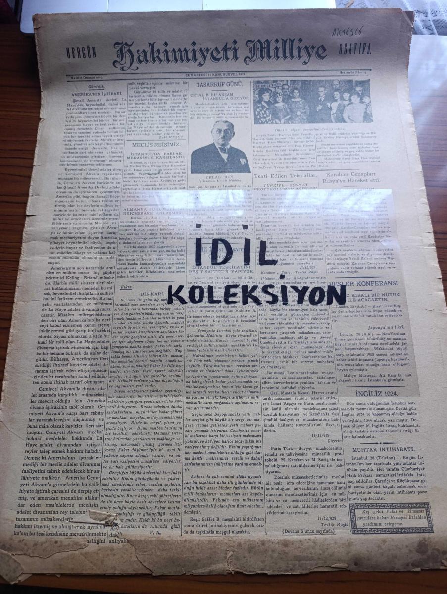 Hakimiyeti Milliye Gazetesi - Turkish Newspaper - 21 Kanunuevvel (Aralık ) 1929 - gündelik Amerika'nın iştiraki yazan Zeki Mesut Başmakale - meclis reisimiz Kazım Paşa İstanbul'da parlak bir merasimle karşılandı - büyük erkan-ı Harbiye reisi Fevzi Paşa'nın kerimesi hanımla Erkanı Harbiye hava müşaviri binbaşı Şefik Bey'in nişan merasimi Dün Mustafa Kemal Paşa hazretlerinin çankaya'daki köşkü'nde icra olunmuştur Fotoğrafı - İş Bankası umum müdürü Celal Bayar Fotoğrafı - Almanya hükümeti ile Reichsbank anlaşması - Beşler konferansı İngiltere kralı bir nutuk ile açacaktır - Türkiye Sovyet protokolünün akisleri - Filistin'de tabii hal avdet edemedi - Yaldız yazan Aka Gündüz Yazı Dizisi - Turing Kulüp seyyah celbi için hazırlığa başladı - Temmuz 14 yazan Emil Ludwig - Osram ampulleri - Chevrolet - Çin denizlerinde hüküm süren korsanlar Fotoğrafı - büyük tayyare piyangosu - İsmet Paşa kız enstitüsü'nde kızlarımızın ev ve aile hayatında kendilerine lazım olan dersler gösterilmektedirler foto adlı eser, Kitap > Süreli Yayınlar > Gazeteler > Türkiye > Genel > Günlük kategorisinde İkinci El olarak satıştadır.