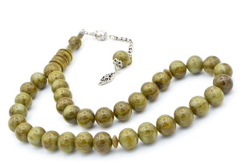 Renk: Yeşil USTA İMZALI KATALİN TESBİH USTA İŞİ GÜMÜŞ KAPLAMA KAMÇILI GÜNLÜK ÇEKİME UYGUNDUR ELDE YAĞ GİBİ KAYAR TANE EBADI: 12.5*13.5 MM İMAME BOY: 5.9 CM TOPLAM BOY: 40 CM Ürünlerimiz doğal olduğu için renk tonlarında küçük farklılıklar olabilir.