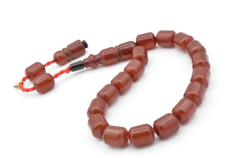 Hakkı Usta İmzalı Koyu Turuncu Sıkma Kehribar Efe Maskot Tesbih 002 başlıklı antika/koleksiyon objesi Türkiye menşe’lidir. 2000 ve sonrası dönemine aittir.