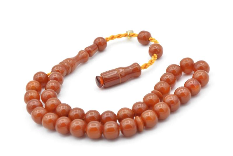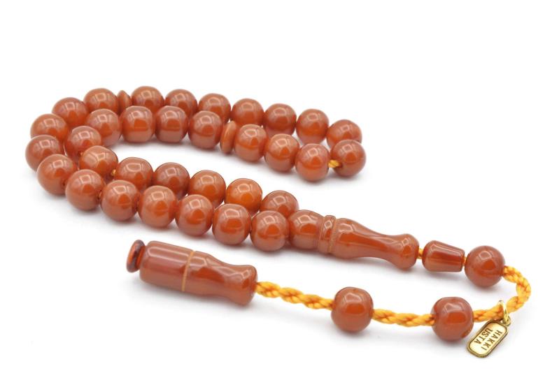 Hakkı Usta İmzalı Küre Kesim Bilek Boy Sarı Sıkma Kehribar Tesbih başlıklı antika/koleksiyon objesi Türkiye menşe’lidir. 2000 ve sonrası dönemine aittir.