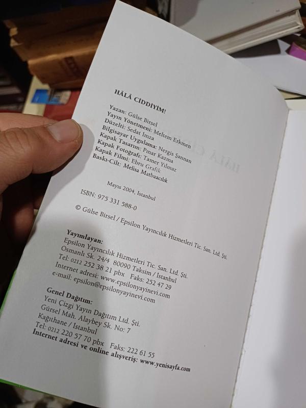 Hala Ciddiyim, Gülse Birsel tarafından kaleme alınmıştır. Kitap 2004 yılında Epsilon Yayınevi tarafından [İstanbul] yayınlanmıştır. 224 sayfadır. Hala Ciddiyim adlı eser Türkçe dilindedir.