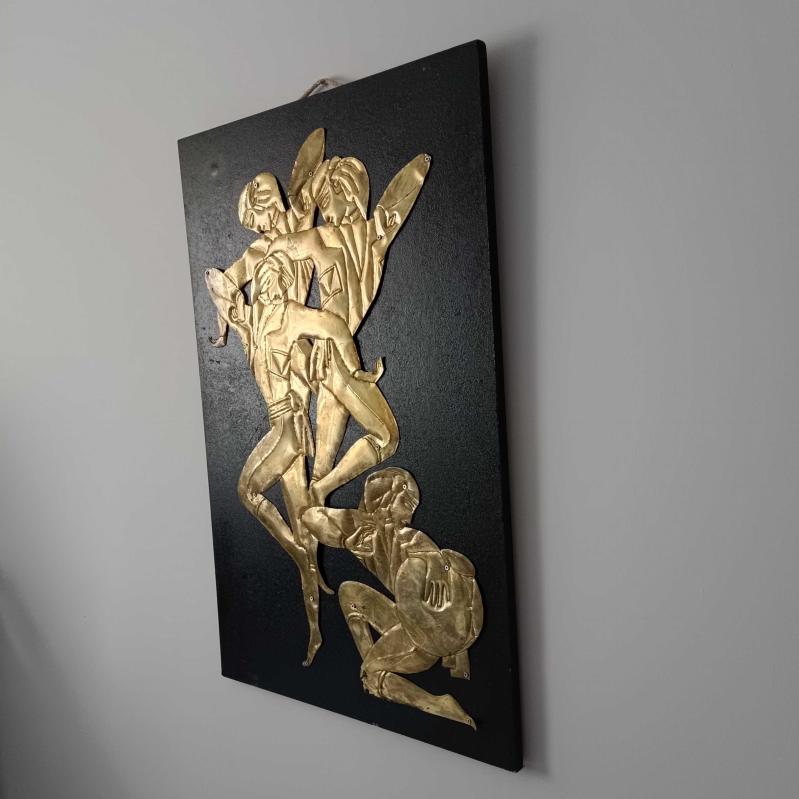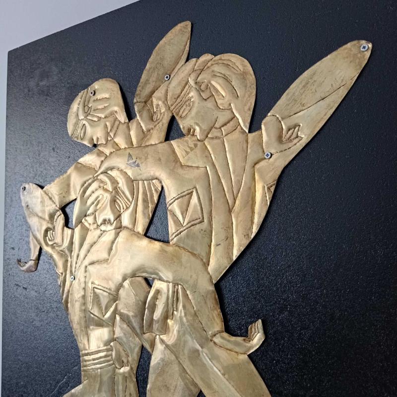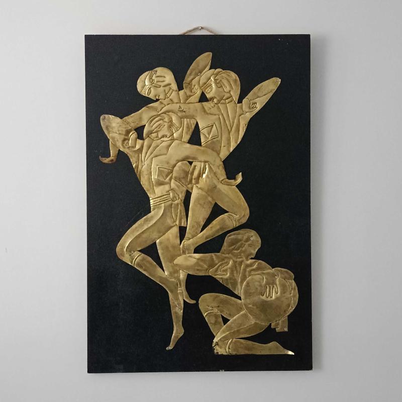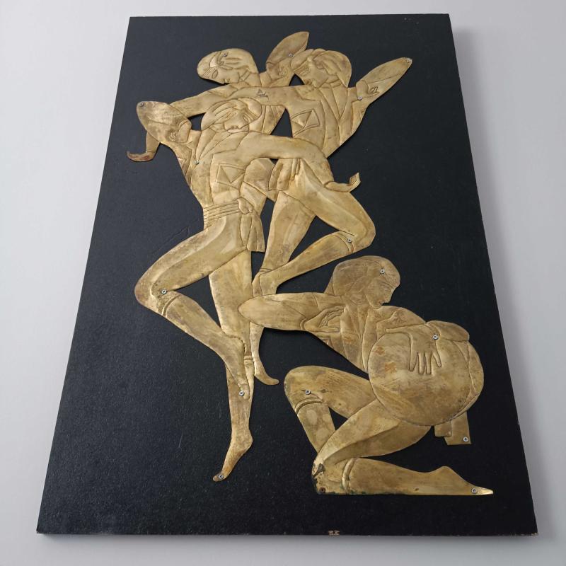 67x100 cm ölçülerinde Sunta Üzerine Tek Parça Pirinç Levhadan El İşçiliği İle Yapılmış Yöresel Halk Oyunları Görselli Duvara Asılabilir Büyük Boy Tablo.