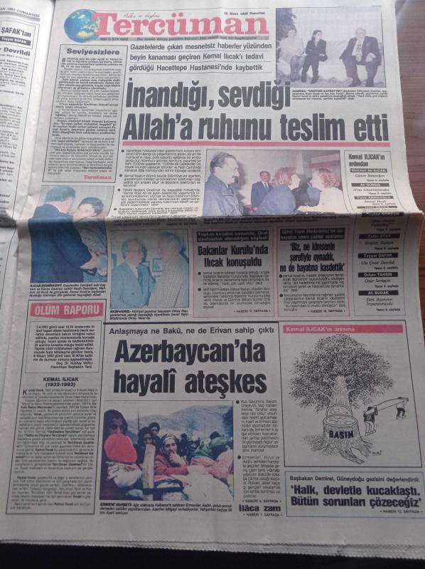 Halka Ve Olaylara Tercüman Gazetesi - 10 Nisan 1993 - Onuru Hayatına Mal Oldu Kemal Ilıcak'ı Kaybettik - Kemal Ilıcak İnandığı Sevdiği Allah'a Ruhunu Teslim Etti - Mehmet Ali Ilıcak - Bakanlar Kurulunda Kemal Ilıcak Konuşuldu - Bülent Ecevit - Nazlı Ilıcak - Tarihi Olaylar Ve Belgelerle Kürtler Yazı Dizisi - Yunus Emre Yazı Dizisi - Şah İsmail'in Büyük Emeli adlı eser Türkçe dilindedir.
