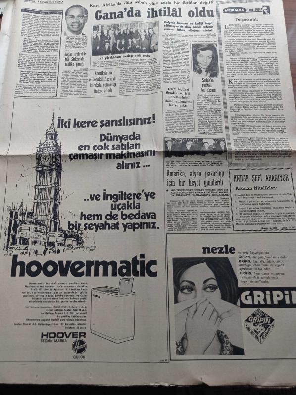 Halka Ve Olaylara Tercüman Gazetesi - 14 Ocak 1972 - Ahmet Kabaklı - Tarık Buğra - Rauf Tamer - 21 Federasyon Başkanı İlk Defa Biraraya Geldi - Cemal Kamacı - Hakkı Sözen - Vergiler Yeniden Gözden Geçirilecek - THY Genel Müdürü İhsan Göksaran Cide'de - İsmet İnönü Çıplak Adamdan Nasıl Vergi Alınır - Anasol'un Daha Büyük Modellerinin İmali İçin Yeni Anlaşma Yapıldı adlı eser, Kitap > Süreli Yayınlar > Gazeteler kategorisinde İkinci El olarak satıştadır.