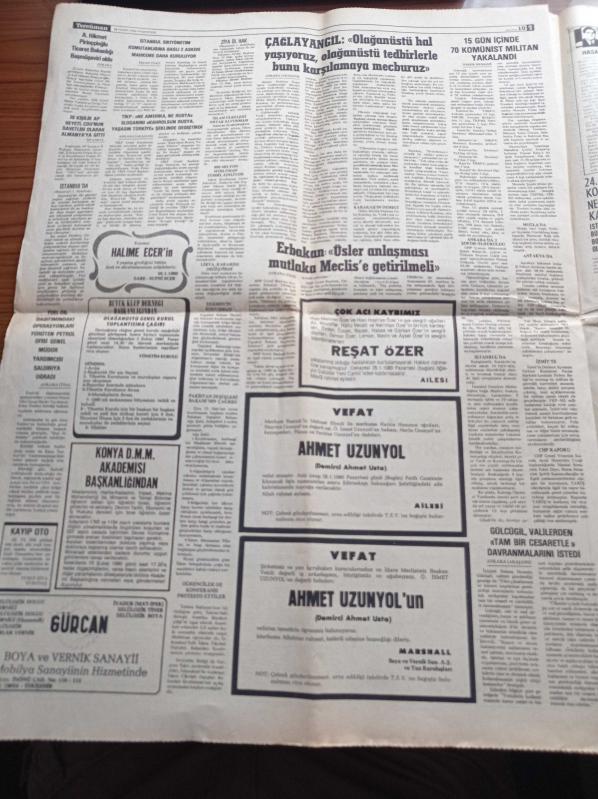 Halka Ve Olaylara Tercüman Gazetesi - 28 Ocak 1980 - 24. Ömer Besim Koşusunu Necdet Ayaz Kazandı - Türkan Şoray - Charlie'nin Melekleri - İçişleri Bakanı Mustafa Gülcügil - Fenerbahçe İyi Futbol İçin Çamuru Arıyor - Turgay Şeren - Ahmet Kabaklı - Rauf Tamer - Süleyman Demirel Türkiye'nin Geleceği Hükümetten Önemlidir - Ziya Ül Hak Sovyet İşgaline Karşı Birleşmeliyiz - Doğu Perinçek TİKP Genel Başkanlığına Seçildi - 15 Gün İçinde 70 Komünist Militan Yakalandı adlı eser, Kitap > Süreli Yayınlar > Gazeteler kategorisinde İkinci El olarak satıştadır.