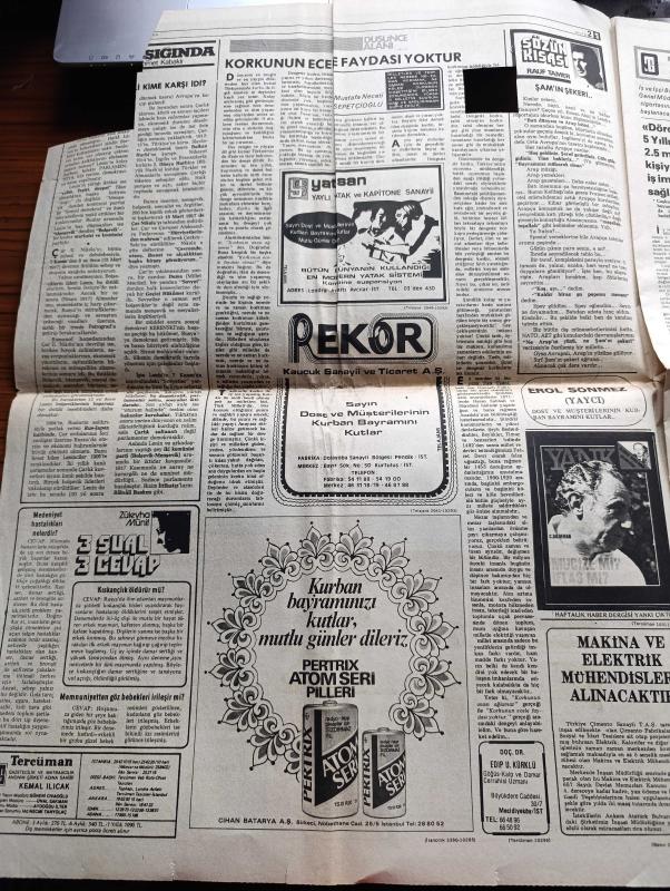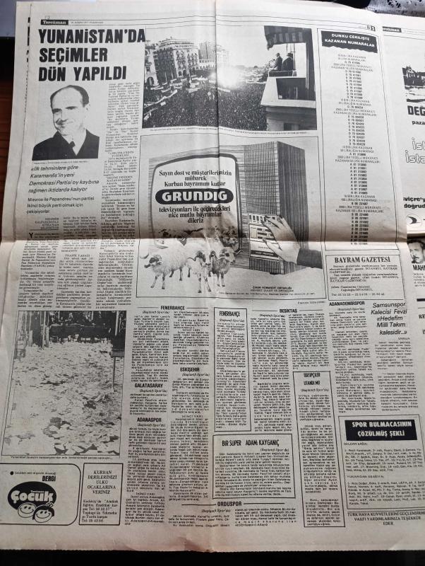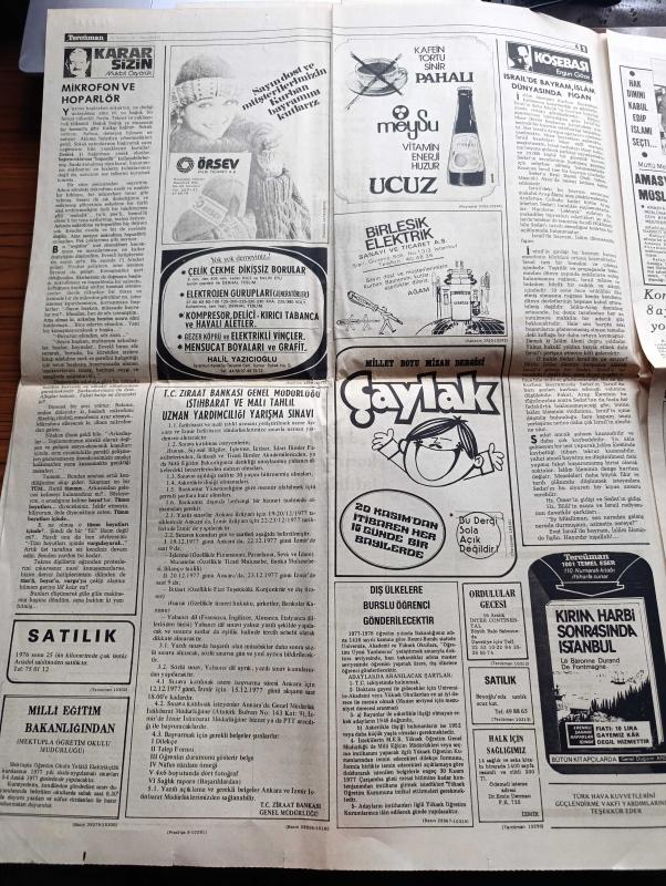 Halk'a Ve Olaylara Tercüman Gazetesi İsmet - 21 Kasım 1977 - Mısır Devlet Başkanı Enver Sedat İşgal Altındaki Toprakları Geri Verin Dedi - İmar Affı Tasarısı Esasları Belli Oldu - Bülent Ecevit Türkiye Bir Cinayetler Ülkesi Durumuna Getirilmiştir Dedi - Kurban Bayramı Bütün Yurtta Yağışlı Ve Kapalı Geçecek - Suluova'da MHP Gecesindeki Patlama Olaylara Yol Açtı - Padişah Abdülhamid'in 93 Yaşındaki Kızı Şadiye Sultan Hastanede Son Günlerini Yaşıyor - 6 Murat 131 Sahibini Buldu - Şam'ın Şekeri Yazan Rauf Tamer Köşe Yazısı - Elektrik Tüketimi Artışında Dünyada Birinciyiz - Meysu - İsrail'de Bayram İslam Dünyasında Figan Yazan Ergun Göze - Kurtuluş Savaşımızın Yaşanmış Gerçek Hikayesi Efeler Geliyor Foto Roman - Gönül Yazar Yılların Gönül Yazarıdır Fotoğraf - Politikada 7 Gün Hazırlayan Şefik Kahramankaptan Yazı Dizisi - Vitrin Yazan Yavuz Donat - Cihan Pehlivanı Kara Ahmet Yazan Eski Bir Pehlivan Yazı Dizisi - Trabzonspor Ali Kemal'in Golü İle Galip - Fenerbahçe Diyarbakır Berabere Kaldı - adlı eser, Kitap > Süreli Yayınlar > Gazeteler > Türkiye > Genel > Günlük kategorisinde İkinci El olarak satıştadır.