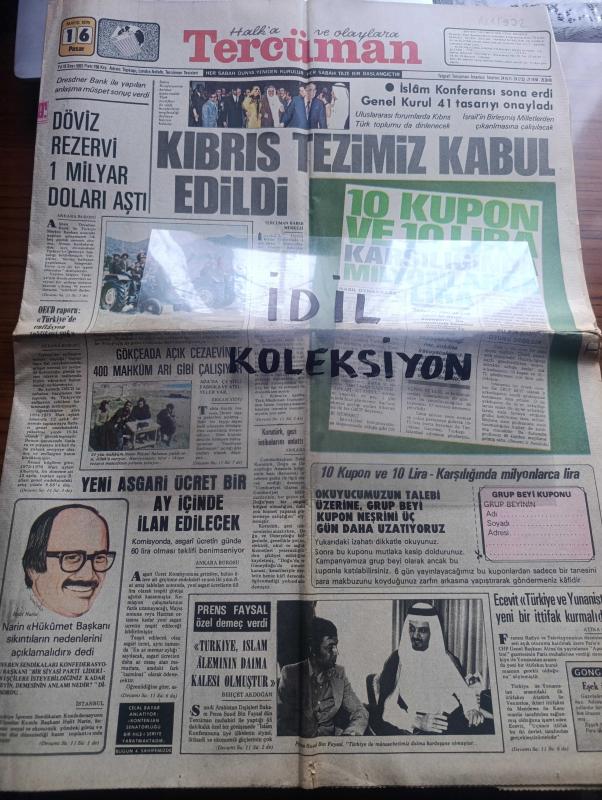 Halka ve Olaylara Tercüman Gazetesi - Turkish Newspaper - 16 Mayıs 1976 - Döviz Rezervi 1 milyar doları aştı - Gökçeada açık cezaevinde 400 mahkum arı gibi çalışıyor - Yeni Asgarî ücret bir ay içinde ilan edilecek - Prens Faysal özel demeç verdi Türkiye İslam aleminin daima kalesi olmuştur dedi fotoğraf - Bülent Ecevit Türkiye ve Yunanistan yeni ittifak kurmalıdır dedi - cumhurbaşkanı Fahri Korutürk gezi intibalarını anlattı - Hora Gemisi Haziran içinde Ege'ye açılabilecek duruma geldi - Celal Bayar anlatıyor Türkiye'de ilk halk iktidarı yazan Nazlı Ilıcak - Vakko tam sayfa reklam - Osmanlı tarihi yazan Lord Kinross Yazı Dizisi - televizyon programı - Edebi Roman Dönemeç'te yazan Tarık Buğra Yazı Dizisi - Trabzonspor 24 futbolcuya 682 bin lira ödedi - Fenerbahçe 9 ayda 9 futbolcu oynatamadı - Amerikalı Williams rüzgarla birlikte esti 9.8 - Bursaspor Galatasaray maçı - Boluspor Beşiktaş maçı - imparator Beckenbauer Yazı Dizisi - Montreal olimpiyatları - Ekrem Özdamar 2.16'yı aşacak mı adlı eser, Kitap > Süreli Yayınlar > Gazeteler > Türkiye > Genel > Günlük kategorisinde İkinci El olarak satıştadır.