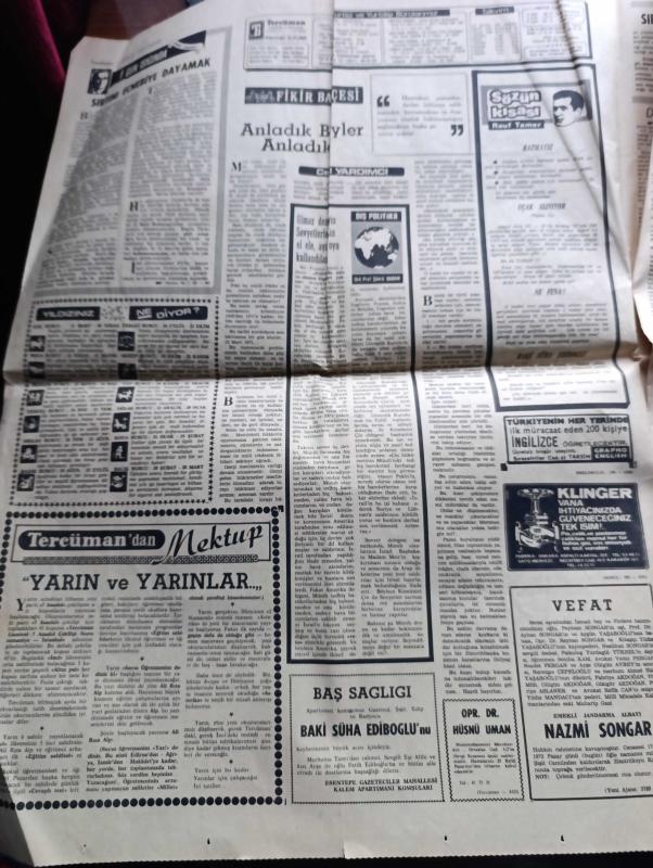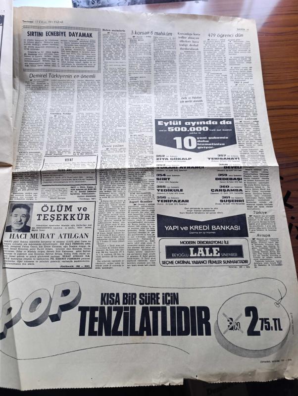 Halka ve Olaylara Tercüman Gazetesi - Turkish Newspaper - 17 Eylül 1972 - İsrail zırhlı birlikleri Lübnan sınırını geçip gerilla yuvalarını bastı - İsrail ile Lübnan çarpışıyor - Malmö'deki insan ve para pazarlığını korsanlar kazandı fotoğraf - Deniz yolları iç hatlarda %45-100 zam yaptı - 479 öğrenci düğün Çapayı gözyaşları içinde terk etti - Başbakan Ferit Melen seçimlerle ilgili kuşkular yersiz dedi - Süleyman Demirel Türkiye'nin en önemli meselesi istikrardır - Sözün Kısası yazan Rauf Tamer - tercüman 18 eylül'de pırıl pırıl yeni Anadol veriyor fotoğraf - Göztepe kalecisi Ali Artuner Beşiktaş maçı ile formasını tekrar giyiyor - sigaralar kitaplar yazan Tarık Buğra - şiirsiz Türkiye yazan İbrahim Minnetoğlu - Volga Volga yazan Murat Sertoğlu Yazı Dizisi - Galatasaray 0 Şekerspor 0 - Vefa Göztepe'ye şans vermedi 2 0 Fotoğrafı - futbolda günün programı - at yarışları tahminleri yazan Osman Atakol - Avrupa izcilik teşkilatı genel kurulu 26 Eylül'de İstanbul'da toplanacak - Datçu adlı eser, Kitap > Süreli Yayınlar > Gazeteler > Türkiye > Genel > Günlük kategorisinde İkinci El olarak satıştadır.