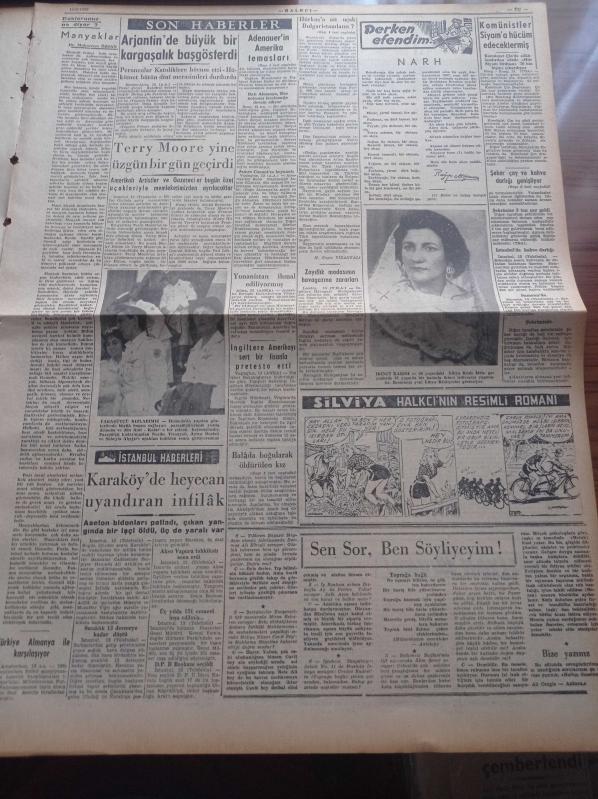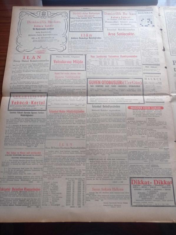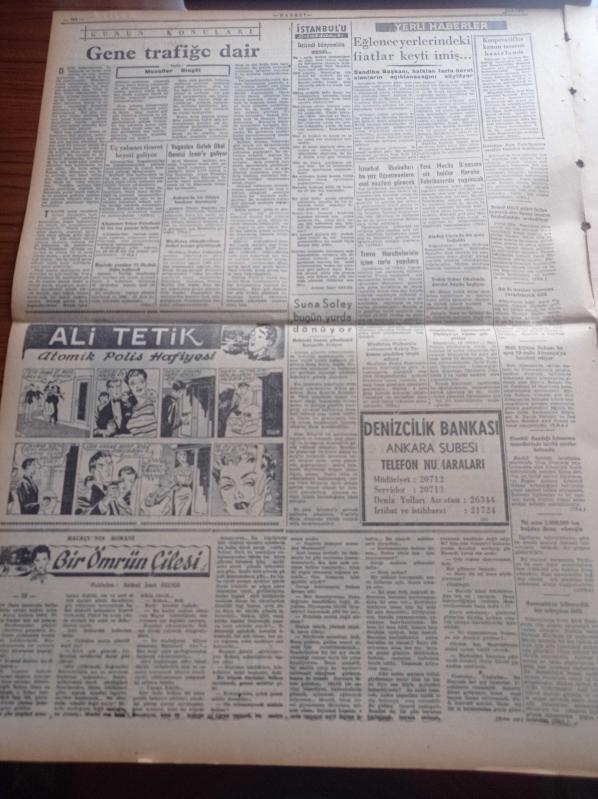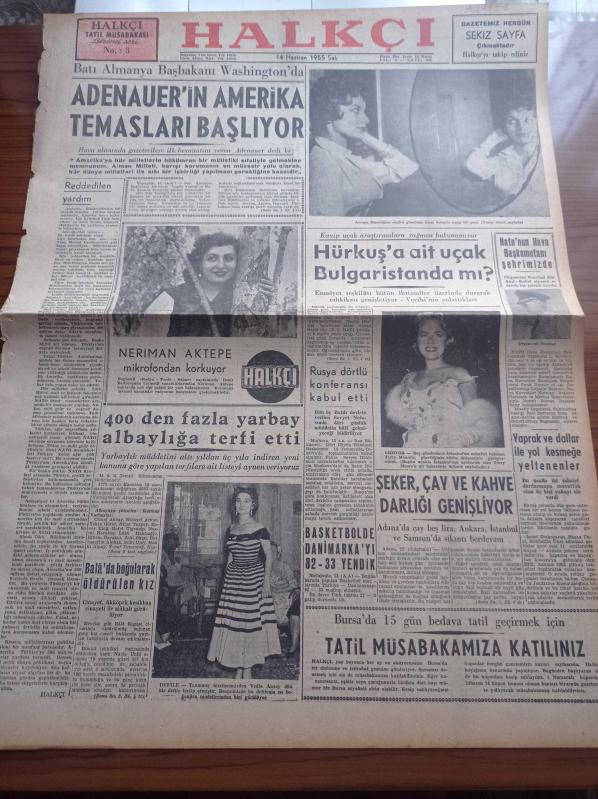 Halkçı Gazete - 14 Haziran 1955 - Batı Almanya Başbakanı Adenauer Washington'da - Hürkuş'a Ait Uçak Bulgaristan'da Mı - Avrupa İkincisi Seçilen Güzelimiz Suna Soley - Basketbolda Danimarka'yı Yendik - Terry Moore - Şeker Çay Ve Kahve Darlığı Genişliyor - NATO'nun Başkomutanı Orgeneral Norstad Şehrimizde - Muzaffer Bingöl - Ali Tetik Atomik Polis Hafiyesi - Truva Harabelerinin İçine Tarla Yapılmış - Pekin Operası Paris'te - Atatürk Devri Yazan Hüseyin Cahit Yalçın Yazı Dizisi - Radife Erten'in Başarısı - Perdeler Kapandıktan Sonra Operamıza Bakış - Ankara Radyosu Sanatkarı Semahat Özdenses Ergökmen - İzmir'den Sesler Neriman Aktepe Diyor Ki - Cemiyet Hayatı - 2. Akdeniz Olimpiyatlarına Katıldığımız Branşlar - 400'den Fazla Yarbay Albaylığa Terfi Etti - Ankara Atletizm Bayramı Cumartesi Günü Başlıyor adlı eser, Kitap > Süreli Yayınlar > Gazeteler > Türkiye > Genel > Günlük kategorisinde İkinci El olarak satıştadır.