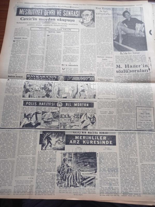 Halkçı Gazete - 16 Aralık 1954 - Merihliler Arz Küresinde Yazan R.F. Casl Yazı Dizisi -Kıbrıs Meselesi Reddedildi - Birleşmiş Milletler Siyasi Komisyonunda Yeni Zelanda'nın Teklifi Kabul Edildi - Kira Kanunu İle İlgili Çalışmalar - Kars Milletvekili Mehmet Hazer'in Sözlü Soruları - NATO Teşkilatı Toplanıyor - İspanya Üniversiteleri - Ölüm Tuzağı Mısır Ehramları Arasında Yazan Cyril Beaton Yazı Dizisi- Üniversite Korosu Konya'ya Gidiyor - Kuzu Fiyatına Hindi Satılıyor - Zale Parry Çıplak Vücutla Dünya Dalma Rekoru Kırdı - NATO'nun 132 Hava Meydanı - Hüseyin Cahit Yalçın'ın 50 Yıllık Siyasi Hatıraları Meşrutiyet Devri Ve Sonrası Yazı Dizisi - Piyanoyu Ayakla Çalan Rozina Adler - Mary Pickford Hayatını Anlatıyor Yazı Dizisi - Dost Mu Düşman Mı Yazan Oreste Pinto Yazı Dizisi - Vefa Beykoz Berabere Kaldı - Basketbol Teşvik Turnuvası - Haftanın Lig Maçları - Ankaragücü Gençlerbirliği Maçı, Nihat Erim tarafından kaleme alınmıştır. Halkçı Gazete - 16 Aralık 1954 - Merihliler Arz Küresinde Yazan R.F. Casl Yazı Dizisi -Kıbrıs Meselesi Reddedildi - Birleşmiş Milletler Siyasi Komisyonunda Yeni Zelanda'nın Teklifi Kabul Edildi - Kira Kanunu İle İlgili Çalışmalar - Kars Milletvekili Mehmet Hazer'in Sözlü Soruları - NATO Teşkilatı Toplanıyor - İspanya Üniversiteleri - Ölüm Tuzağı Mısır Ehramları Arasında Yazan Cyril Beaton Yazı Dizisi- Üniversite Korosu Konya'ya Gidiyor - Kuzu Fiyatına Hindi Satılıyor - Zale Parry Çıplak Vücutla Dünya Dalma Rekoru Kırdı - NATO'nun 132 Hava Meydanı - Hüseyin Cahit Yalçın'ın 50 Yıllık Siyasi Hatıraları Meşrutiyet Devri Ve Sonrası Yazı Dizisi - Piyanoyu Ayakla Çalan Rozina Adler - Mary Pickford Hayatını Anlatıyor Yazı Dizisi - Dost Mu Düşman Mı Yazan Oreste Pinto Yazı Dizisi - Vefa Beykoz Berabere Kaldı - Basketbol Teşvik Turnuvası - Haftanın Lig Maçları - Ankaragücü Gençlerbirliği Maçı adlı eser Türkçe dilindedir.