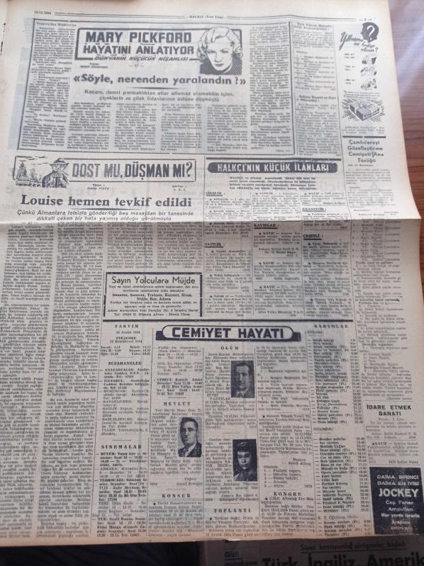 Halkçı Gazete - 16 Aralık 1954 - Merihliler Arz Küresinde Yazan R.F. Casl Yazı Dizisi -Kıbrıs Meselesi Reddedildi - Birleşmiş Milletler Siyasi Komisyonunda Yeni Zelanda'nın Teklifi Kabul Edildi - Kira Kanunu İle İlgili Çalışmalar - Kars Milletvekili Mehmet Hazer'in Sözlü Soruları - NATO Teşkilatı Toplanıyor - İspanya Üniversiteleri - Ölüm Tuzağı Mısır Ehramları Arasında Yazan Cyril Beaton Yazı Dizisi- Üniversite Korosu Konya'ya Gidiyor - Kuzu Fiyatına Hindi Satılıyor - Zale Parry Çıplak Vücutla Dünya Dalma Rekoru Kırdı - NATO'nun 132 Hava Meydanı - Hüseyin Cahit Yalçın'ın 50 Yıllık Siyasi Hatıraları Meşrutiyet Devri Ve Sonrası Yazı Dizisi - Piyanoyu Ayakla Çalan Rozina Adler - Mary Pickford Hayatını Anlatıyor Yazı Dizisi - Dost Mu Düşman Mı Yazan Oreste Pinto Yazı Dizisi - Vefa Beykoz Berabere Kaldı - Basketbol Teşvik Turnuvası - Haftanın Lig Maçları - Ankaragücü Gençlerbirliği Maçı adlı eser, Kitap > Süreli Yayınlar > Gazeteler > Türkiye > Genel > Günlük kategorisinde İkinci El olarak satıştadır.