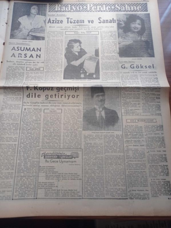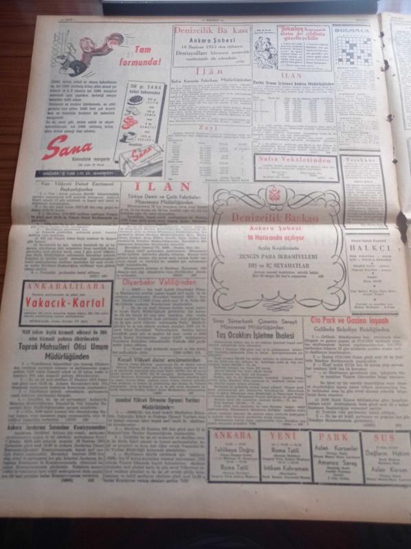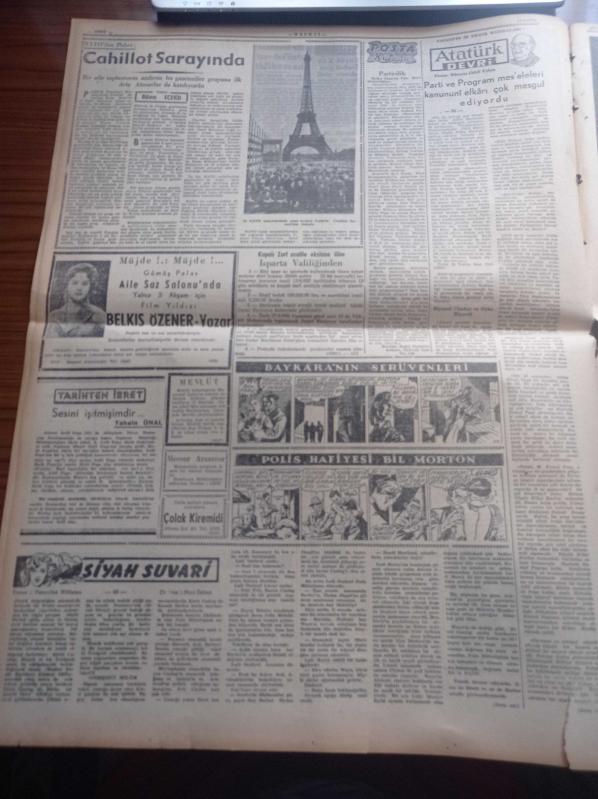 Halkçı Gazete - 16 Haziran 1955 - Celal Bayar Beyrut Yolunda - Lübnan Türk Irak Paktına Katılıyor - Amerikan Yardımına Dair Başbakan Adnan Menderes'in Bir Demeci - Avrupa Güzeli İlan Edilen İnga Britt Soedberg - Amerika Cumhurbaşkanı Eisenhower San Francisco'da Bir Nutuk Söyleyecek - Ali Tetik Atomik Polis Hafiyesi - Şehrimizde 59 Ton Şeker Dağıtıldı - Atatürk Devri Yazan Hüseyin Cahit Yalçın Yazı Dizisi - Film Yıldızı Belkıs Özener Yazar Gümüş Palas Aile Saz Salonunda- Atatürk Devri Yazan Hüseyin Cahit Yalçın Yazı Dizisi - Operet Sanatkârları Asuman Arsan - Sanatkar Portreleri Azize Tözem Ve Sanatı - İzmir'den Sesler Güler Göksel - Üstad Fahri Kopuz Geçmişi Dile Getiriyor - Sevdiğiniz Şarkılar Türküler Bu Gece Uymamışım- Eski Futbol Federasyonu Başkanı Orhan Şeref Apak'ın İtalya Maçı Hakkındaki Beyanatı - Milli Futbolcular Gene Fenerbahçe Stadında Çalıştı adlı eser, Kitap > Süreli Yayınlar > Gazeteler > Türkiye > Genel > Günlük kategorisinde İkinci El olarak satıştadır.