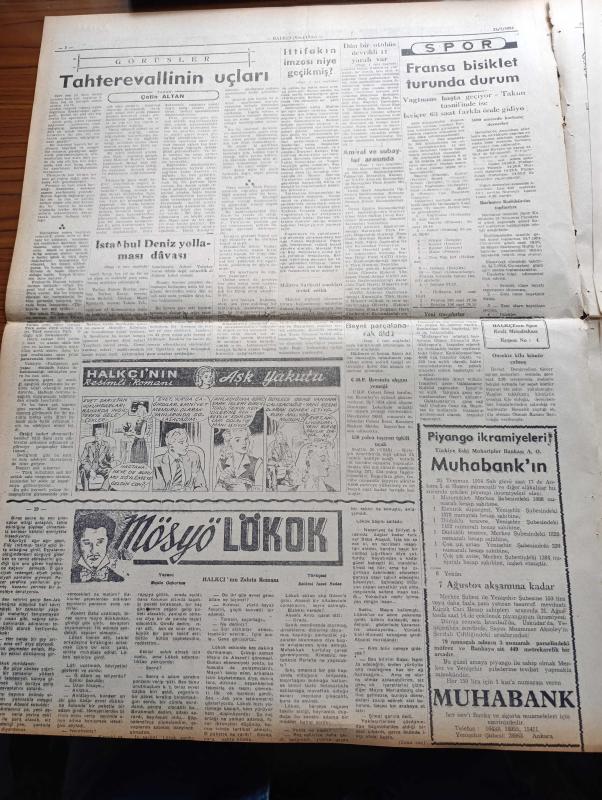 Halkçı Gazete - 21 Temmuz 1954 - Hindiçini Ateşkes Anlaşması - İstanbul Deniz Yollaması Davası - Dün Mevsimin En Sıcak Gününü Yaşadık - Atatürk Heykeline Beyanname - Başbakan Adnan Menderes İtalyan Elçisi Konte Luca Pietromarchi'yi Kabul Etmiştir - Ekonomi Ve Ticaret Bakanı Sıtkı Yırcalı İzahat Verdi - Mösyö Lökok Yazan Emile Gaborian Yazı Dizisi - Çetin Altan Köşe Yazısı - Fransa Bisiklet Turunda Durum - Halkçı'nın Resimli Romanı Aşk Yakutu - İspanya'dan Mısır'a Silah - Kuzey Güney Kore Ticareti - İzmir'de Deniz İşçilerinin Sendika Binası Mühürlendi - Hayatımın Hikayesi Marilyn Monroe Yazı Dizisi - Hüseyin Cahit Yalçın'ın 50 Yıllık Siyasi Hatıraları Meşrutiyet Devri Ve Sonrası Yazı Dizisi - Baykara'nın Serüvenleri Yıldızların Hücumu Yazı Dizisi - Brezilya'nın Bakir Ormanlarında Tigrero Yazı Dizisi - Derman Ağrı Kesici - Arı Unları - Bir Türk Masalı Eşkıyalar Arasında Yazan Rıfat Öztoprak - Çocuk Köşesi - Nasreddin Hoca - Siraküzalı Bilgin Arşimet adlı eser, Kitap > Süreli Yayınlar > Gazeteler > Türkiye > Genel > Günlük kategorisinde İkinci El olarak satıştadır.