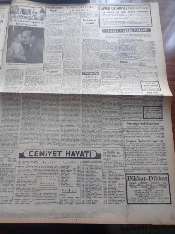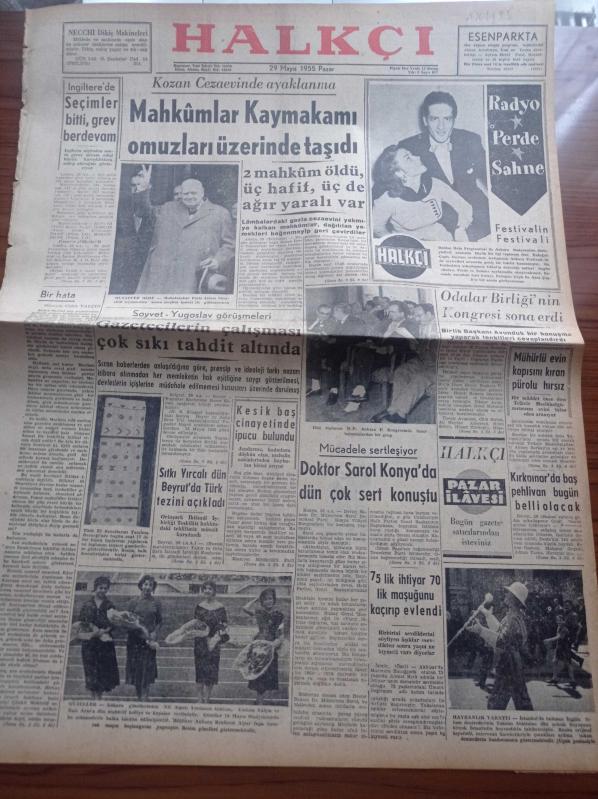 Halkçı Gazete - 29 Mayıs 1955 - İngiltere'de Seçimler Bitti Grev Berdevam - Kozan Cezaevinde Ayaklanma Mahkumlar Kaymakamı Omuzlarda Taşıdı - Muhafazakar Parti Lideri Churchill Muzaffer Oldu - Doktor Mükerrem Sarol Konya'da Dün Çok Sert Konuştu - Sovyet Yugoslav Görüşmeleri - Kırkpınar'da Baş Pehlivan Bugün Belli Olacak - Ankara Güzelleri Nil Alpar Yurdanur Gürkök Türkan Yalçın Ve Esin Aras - Ali Tetik Atomik Polis Hafiyesi - Yosmanın Aşkı Mary Anne Yazan Daphne Du Maurier Yazı Dizisi - Terziler Federasyonu Kongresi - Atom Komitesinin Çalışmaları Bitti - Ankara Festivali - Atatürk Devri Yazan Hüseyin Cahit Yalçın Yazı Dizisi - Emel Gazimihal BBC Radyosuna Staj Yapmaya Gidiyor- Yeni Sesler Yeni Sazlar Fikret Kozinoğlu - İzmir'in En Tipik Askerî Güneri Kocatepe Kimdir - Eski Kral Faruk İş Arıyor Yazı Dizisi - Sana Nebati Yağ - Adalet Ankara'da Kaybetti - Ankaralı Hakem Zülbahar Sağnak En Çok Maç İdare Eden Hakem Oldu - Fluminense Galatasaray'ı Yendi, Nihat Erim tarafından kaleme alınmıştır. Halkçı Gazete - 29 Mayıs 1955 - İngiltere'de Seçimler Bitti Grev Berdevam - Kozan Cezaevinde Ayaklanma Mahkumlar Kaymakamı Omuzlarda Taşıdı - Muhafazakar Parti Lideri Churchill Muzaffer Oldu - Doktor Mükerrem Sarol Konya'da Dün Çok Sert Konuştu - Sovyet Yugoslav Görüşmeleri - Kırkpınar'da Baş Pehlivan Bugün Belli Olacak - Ankara Güzelleri Nil Alpar Yurdanur Gürkök Türkan Yalçın Ve Esin Aras - Ali Tetik Atomik Polis Hafiyesi - Yosmanın Aşkı Mary Anne Yazan Daphne Du Maurier Yazı Dizisi - Terziler Federasyonu Kongresi - Atom Komitesinin Çalışmaları Bitti - Ankara Festivali - Atatürk Devri Yazan Hüseyin Cahit Yalçın Yazı Dizisi - Emel Gazimihal BBC Radyosuna Staj Yapmaya Gidiyor- Yeni Sesler Yeni Sazlar Fikret Kozinoğlu - İzmir'in En Tipik Askerî Güneri Kocatepe Kimdir - Eski Kral Faruk İş Arıyor Yazı Dizisi - Sana Nebati Yağ - Adalet Ankara'da Kaybetti - Ankaralı Hakem Zülbahar Sağnak En Çok Maç İdare Eden Hakem Oldu - Fluminense Galatasaray'ı Yendi adlı eser Türkçe dilindedir.