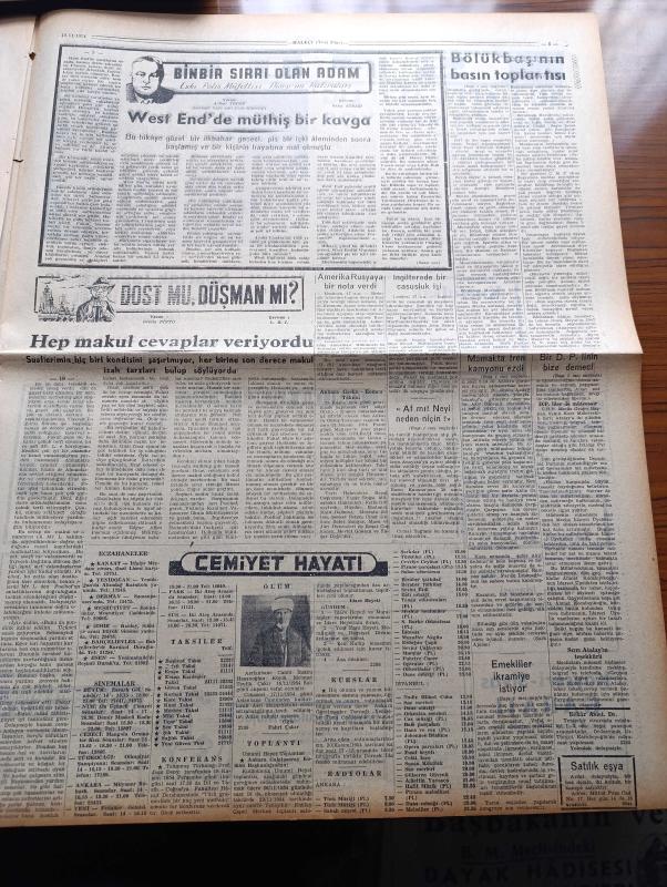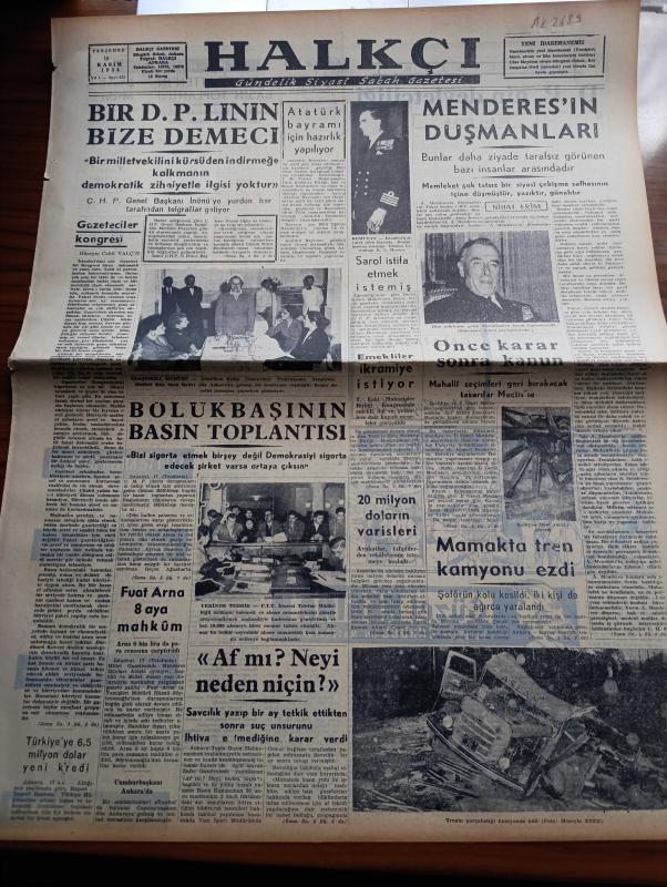 Halkçı Gazetesi - 18 Kasım 1954 - Bir Demokrat Parti'nin Halkçı Gazetesine Demeci Bir Milletvekilinin Kürsüden İndirmeye Kalkmanın Demokratik Zihniyetle Alakası Yoktur - Atatürk Bayramı İçin Hazırlık Yapılıyor - Adnan Menderes'in Düşmanları - Devlet Bakanı Mükerrem Sarol İstifa Etmek İstemiş - Osman Bölükbaşı'nın Basın Toplantısı - Demokrat Parti'nin Devletçiliği Yazan Ali Rıza Erem - Kıbrıs'a 103 Türk Bayrağı Gönderildi - Silviya'nın Avrupa Gezisi Resimli Romanı - Güzel Regina Dedektif Cardoc'un Maceraları Yazan Georges Dejean Yazı Dizisi - Komünistlerin Müdafaa Bloku - Uçan Dairelerle İlgili Bir Şirket - Filistin Mültecileri Meselesi - Hüseyin Cahit Yalçın'ın 50 Yıllık Siyasi Hatıraları Meşrutiyet Devri Ve Sonrası Yazı Dizisi - Ölü Kafası Pelerin Altında İşlenen Cinayet Yazan Ketlin Veyd Yazı Dizisi - Polis Hafiyesi Bil Morton Çizgi Roman - Binbir Sırrı Olan Adam Eski Polis Müfettişi Thorp'un Hatıraları Yazan Arthur Thorp - Bu Hafta Altı Lig Maçı Oynanıyor - Beşiktaş Beyoğluspor adlı eser, Kitap > Süreli Yayınlar > Gazeteler > Türkiye > Genel > Günlük kategorisinde İkinci El olarak satıştadır.
