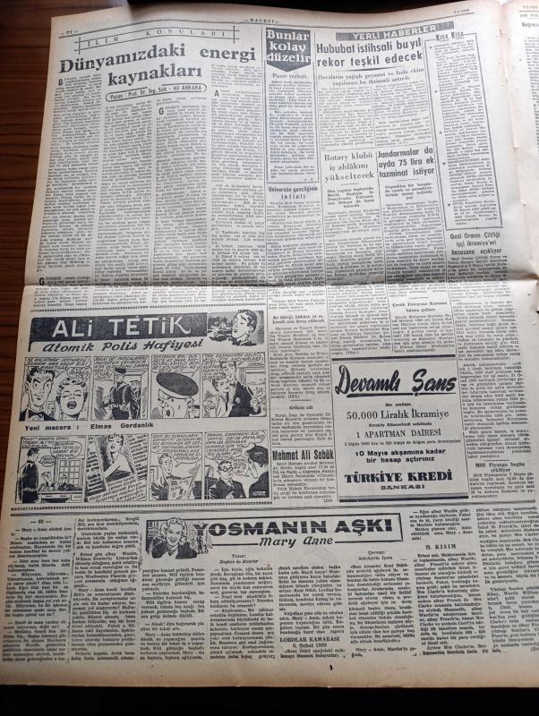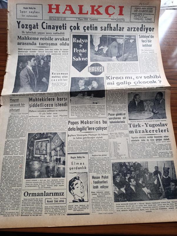 Halkçı Gazetesi - 7 Mayıs 1955 - Yozgat Cinayeti Çok Çetin Safhalar Arzediyor - Kiracı Mı Ev Sahibi Mi Galip Çıkacak - Papaz Makarios Bu Defa İngilizlere Çatıyor - Futbol Federasyonu Başkanı Hasan Polat Faaliyetleri İzah Ediyor - Ali Tetik Atomik Polis Hafiyesi Çizgi Roman - Yosmanın Aşkı Mary Anne Yazan Daphne Du Maurier Yazı Dizisi - Rotary Kulübü İş Ahlakını Yükseltecek - Silviya Halkçı'nın Resimli Romanı - Hüseyin Cahit Yalçın'ın 50 Yıllık Hatıraları Atatürk Devri Yazan Hüseyin Cahit Yalçın Yazı Dizisi - Siyah Süvari Yazan Valentine Williams Yazı Dizisi - Mehmet Akif Bir İslam Şairinin Romanı Yazan Emin Erişirgil Yazı Dizisi - Ankara Radyosunda Birbuçuk Saat Kahkaha - Hem Caz Şarkıcılığı Hem Alaturka Şarkılar Söyleyen Selahattin Özgü Bir Parfümeri Mağazası Açtı - Schiller'in 150. Yıldönümünde Devlet Tiyatromuzda da Bir Anma Töreni Tertip Edildi - Soprano Atıfet Usmanbaş'ın Zarif Bir Jesti - Mobilgas - Ordu Boks Takımı Almanya'ya Gitti, Nihat Erim tarafından kaleme alınmıştır. Halkçı Gazetesi - 7 Mayıs 1955 - Yozgat Cinayeti Çok Çetin Safhalar Arzediyor - Kiracı Mı Ev Sahibi Mi Galip Çıkacak - Papaz Makarios Bu Defa İngilizlere Çatıyor - Futbol Federasyonu Başkanı Hasan Polat Faaliyetleri İzah Ediyor - Ali Tetik Atomik Polis Hafiyesi Çizgi Roman - Yosmanın Aşkı Mary Anne Yazan Daphne Du Maurier Yazı Dizisi - Rotary Kulübü İş Ahlakını Yükseltecek - Silviya Halkçı'nın Resimli Romanı - Hüseyin Cahit Yalçın'ın 50 Yıllık Hatıraları Atatürk Devri Yazan Hüseyin Cahit Yalçın Yazı Dizisi - Siyah Süvari Yazan Valentine Williams Yazı Dizisi - Mehmet Akif Bir İslam Şairinin Romanı Yazan Emin Erişirgil Yazı Dizisi - Ankara Radyosunda Birbuçuk Saat Kahkaha - Hem Caz Şarkıcılığı Hem Alaturka Şarkılar Söyleyen Selahattin Özgü Bir Parfümeri Mağazası Açtı - Schiller'in 150. Yıldönümünde Devlet Tiyatromuzda da Bir Anma Töreni Tertip Edildi - Soprano Atıfet Usmanbaş'ın Zarif Bir Jesti - Mobilgas - Ordu Boks Takımı Almanya'ya Gitti adlı eser Türkçe dilindedir.