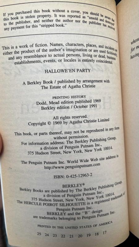 Hallowe'en Party: A Hercule Poirot Novel - English - Softcover - Agatha Christie - Berkley Books adlı eser, Kitap > Edebiyat, Kurgu > Polisiye, Cinai > Dünya Edebiyatı > Agatha Christie kategorisinde İkinci El olarak satıştadır.