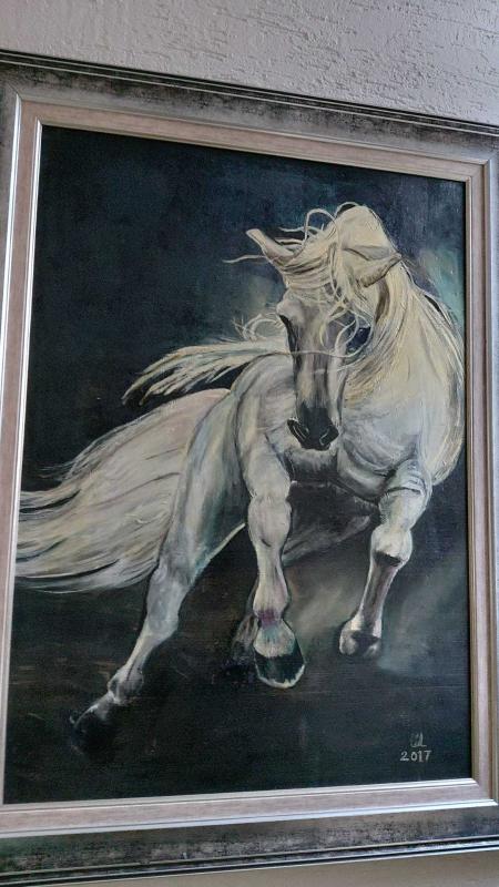 Hareketli Beyaz At – İmzalı Akrilik Tablo (2017) 50x70 cm, en son 10 gün önce güncellenmiştir.