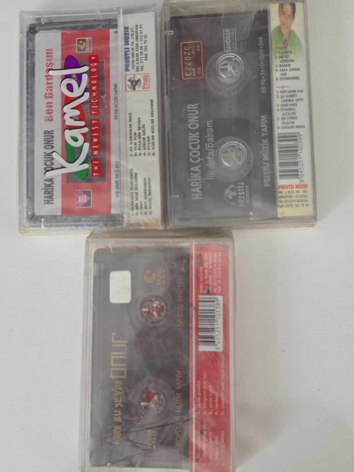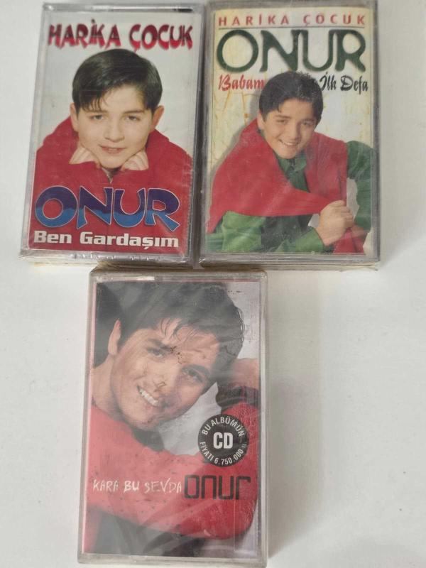 Harika Çocuk Onur'un genellikle ilk baskılarının yer aldığı 3 adet albümünün jelatini açılmamış orijinal ambalajlı kaseti. Ben Gardaşım kasetinin kaydı özel stüdyo dolumdur lakin kartoneti orijinaldir.