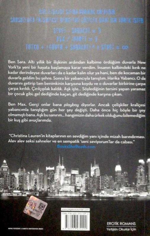 Harika Yabancı, Christina Lauren tarafından kaleme alınmıştır. Kitap 2014 yılında Pegasus Yayıncılık tarafından yayınlanmıştır. 328 sayfadır. Harika Yabancı adlı eser Türkçe dilindedir.