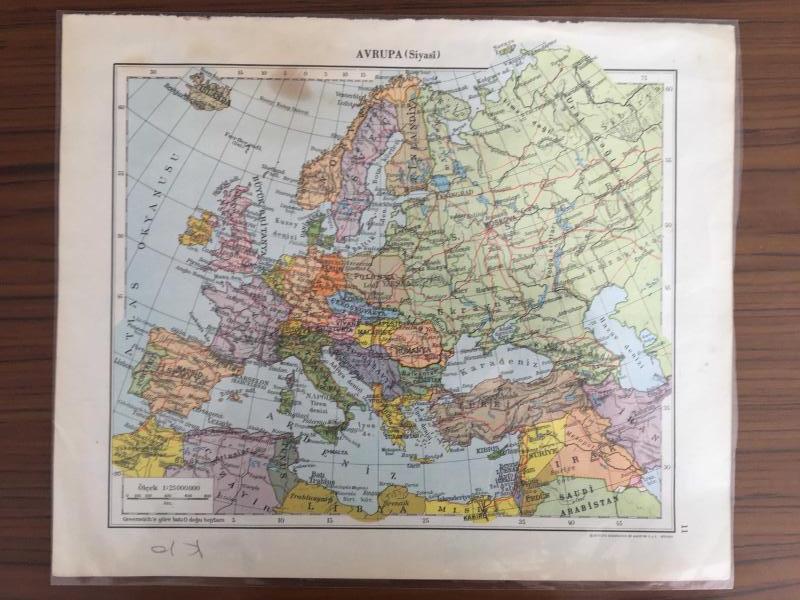 Harita Avrupa (siyasi) Ukrayna, Fransa, Moskova, Türkiye, Romanya, Polonya 23x27,5 cm, 2 yıl önce satışa sunulmuştur.